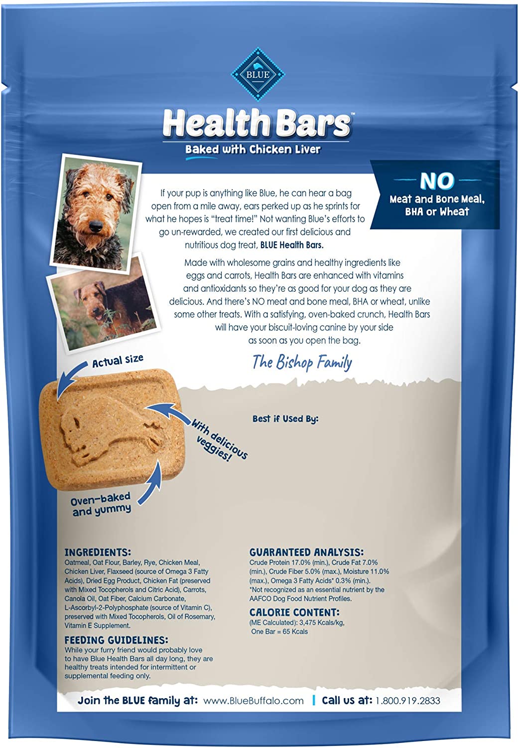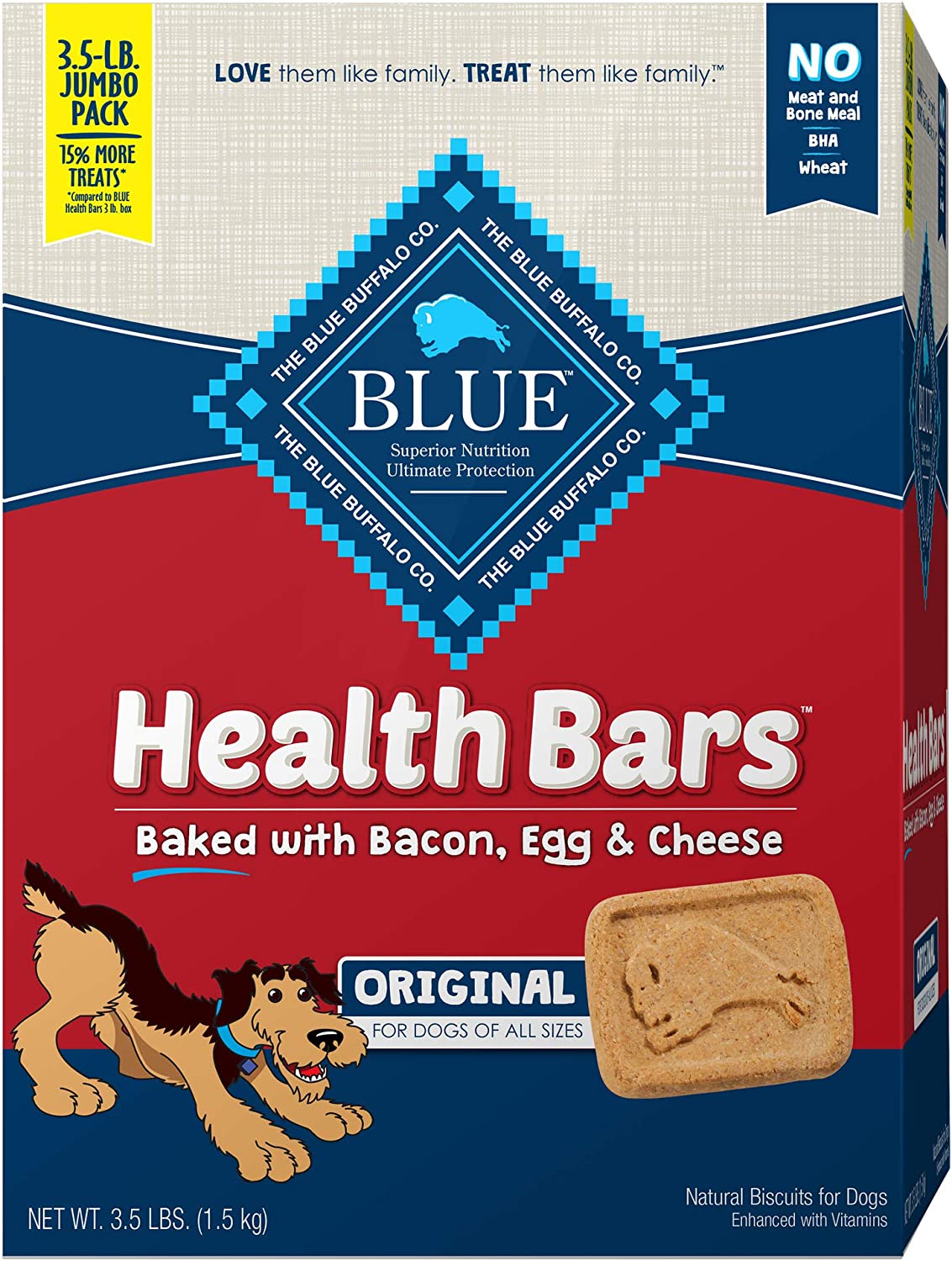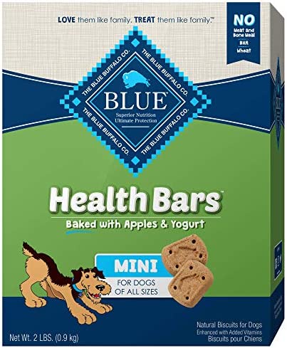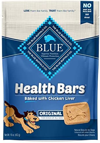 A favorite of health-conscious pet parents, Blue Buffalo Health Bars deliver the great taste and satisfying crunch our furry friends love, but without the corn, wheat and soy known to cause allergic reactions in some dogs. Made with the finest natural ingredients, fortified with omega 3 and antioxidants, and oven-baked for a big crunch, these treats are as healthy as they are tasty!