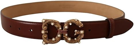 Dolce & Gabbana Brown Leather Brass Logo Buckle Amore Belt 75 cm / 30 Inches