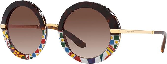 Dolce & Gabbana DG 4393 327813 Top Havana/Handcart Plastic Round Sunglasses Brown Gradient Lens