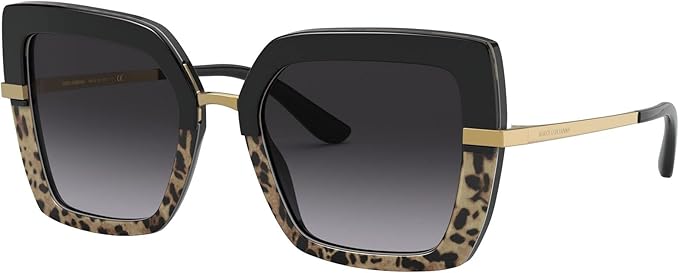 Dolce & Gabbana Women's round Fashion Sunglasses, Top Black/Print Leo/Black/Light Grey Gradient Black, One Size