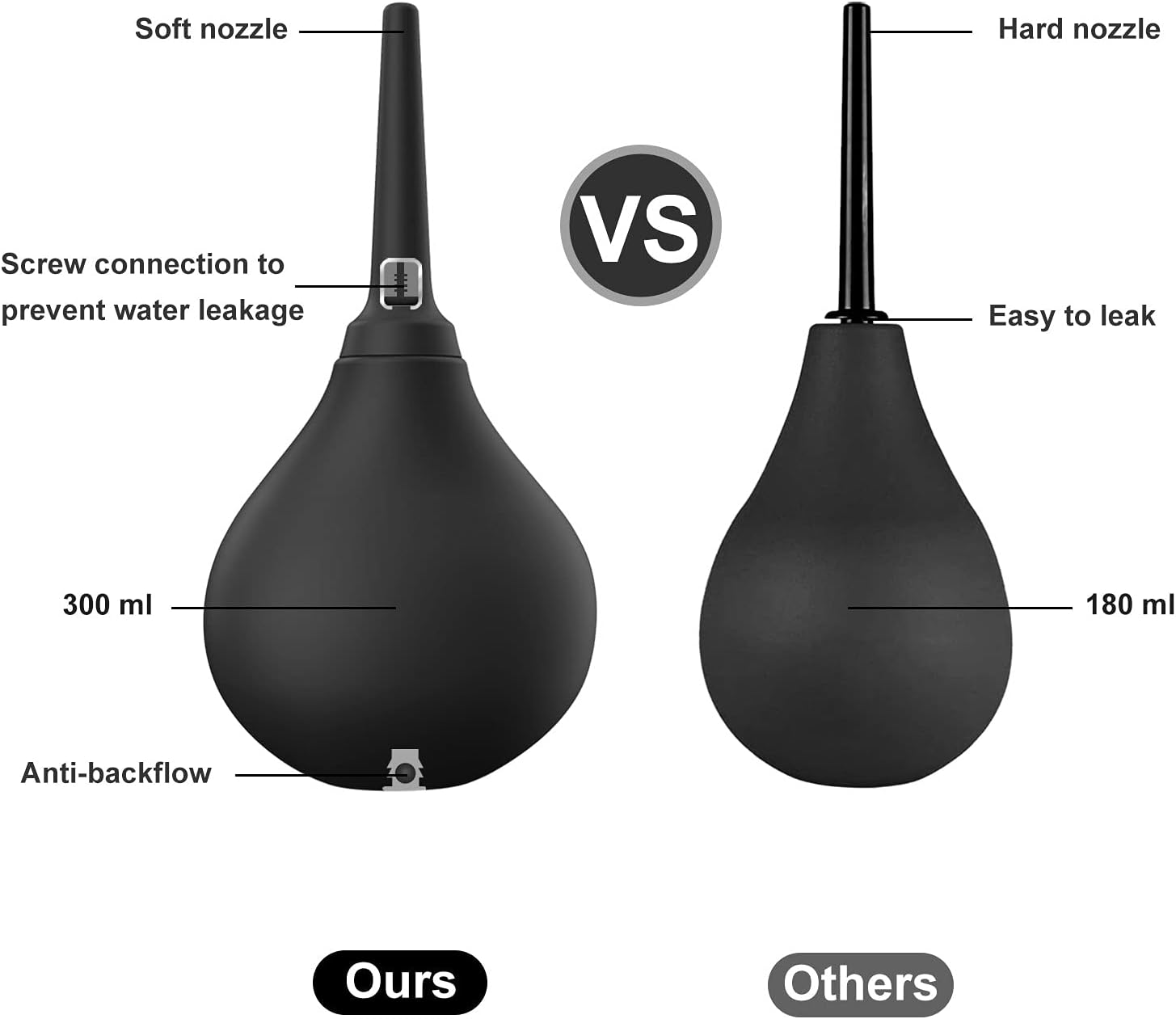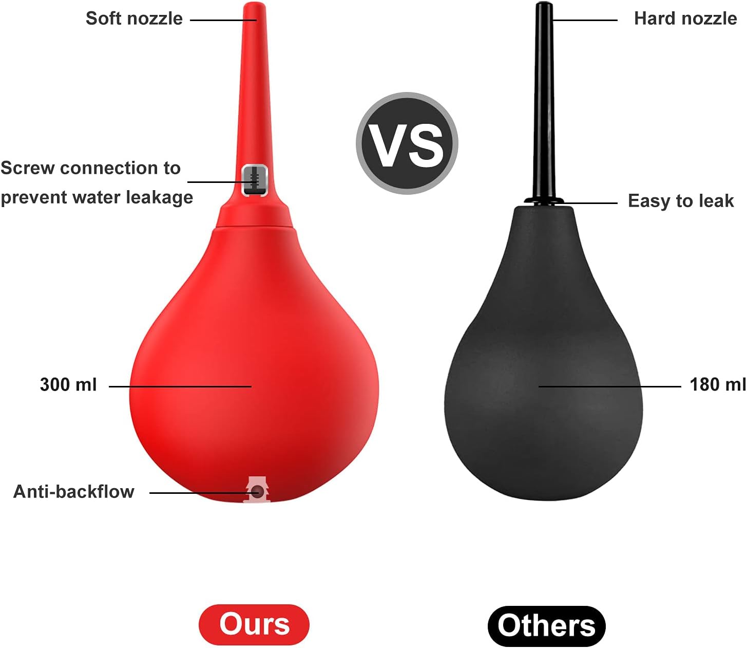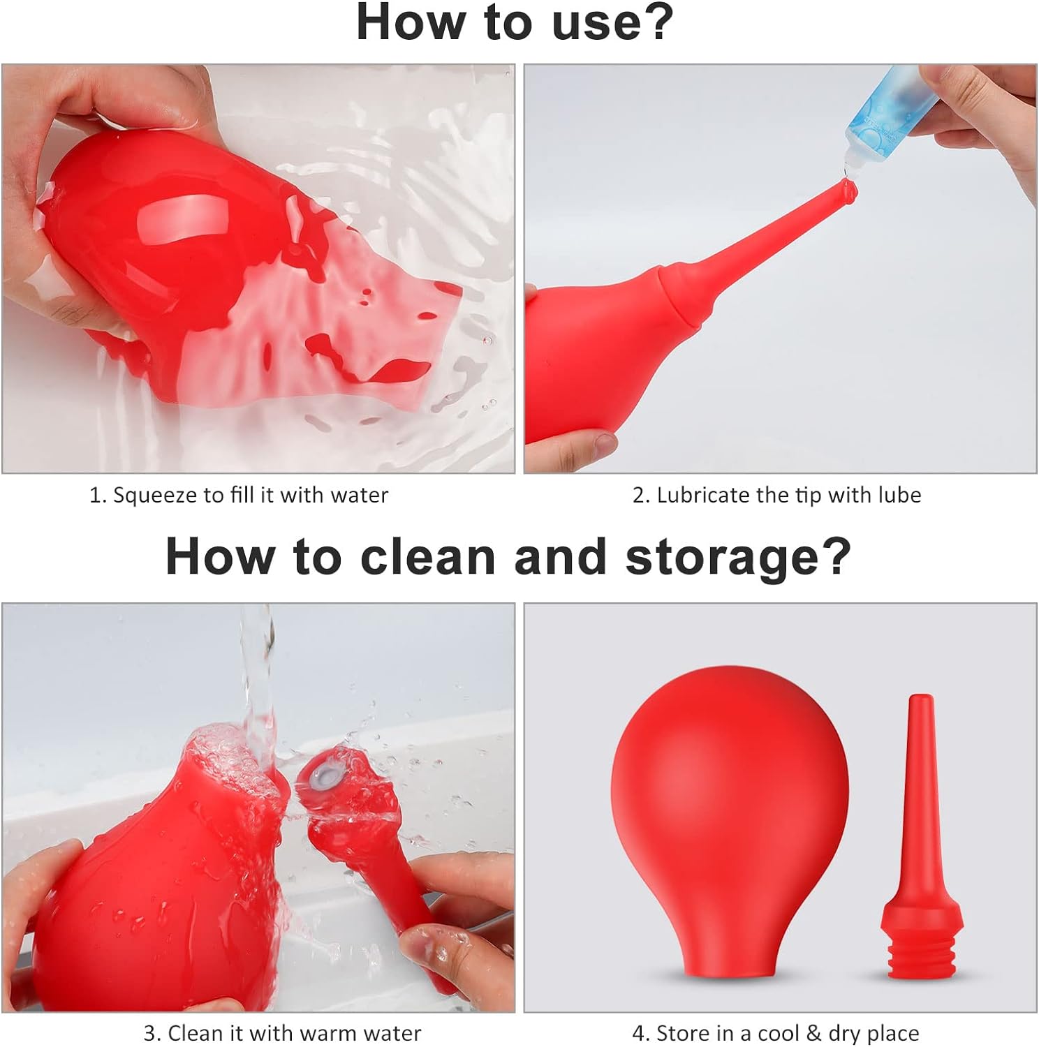 • 300ml Large Capacity- Your large capacity anal douche can hold more than the average amount of water or chosen cleansing fluid, this enema bulb can be filled up to 10 oz. (300mL) for a thorough clean, so there's never need for a refill mid-session.