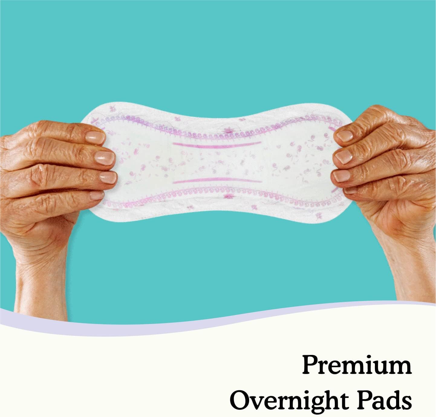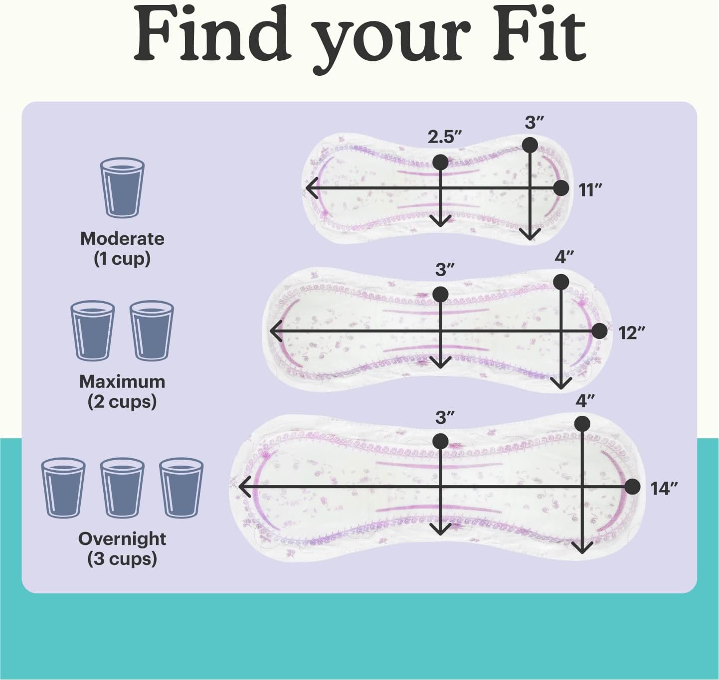 • Fits Comfortably into Regular Underwear: The 14 inch pad fits into underwear with an adhesive backing to prevent bunching or slipping, and can absorb up to 3 cups of liquid; each pad is individually wrapped for convenience, cleanliness and discretion