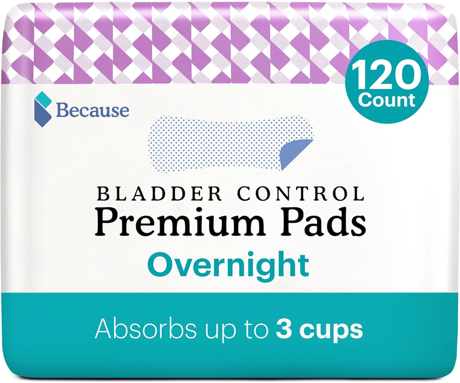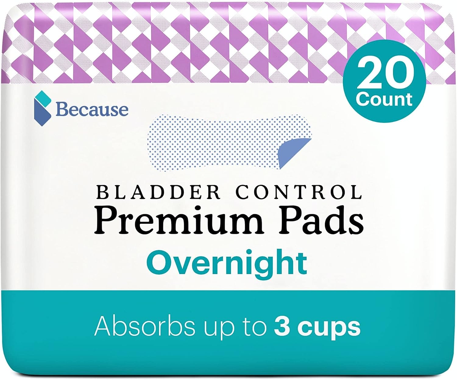 Because Premium Incontinence Pads for Women - Discreet, Individually Wrapped Liners - Overnight, 20 Count (Pack of 1)