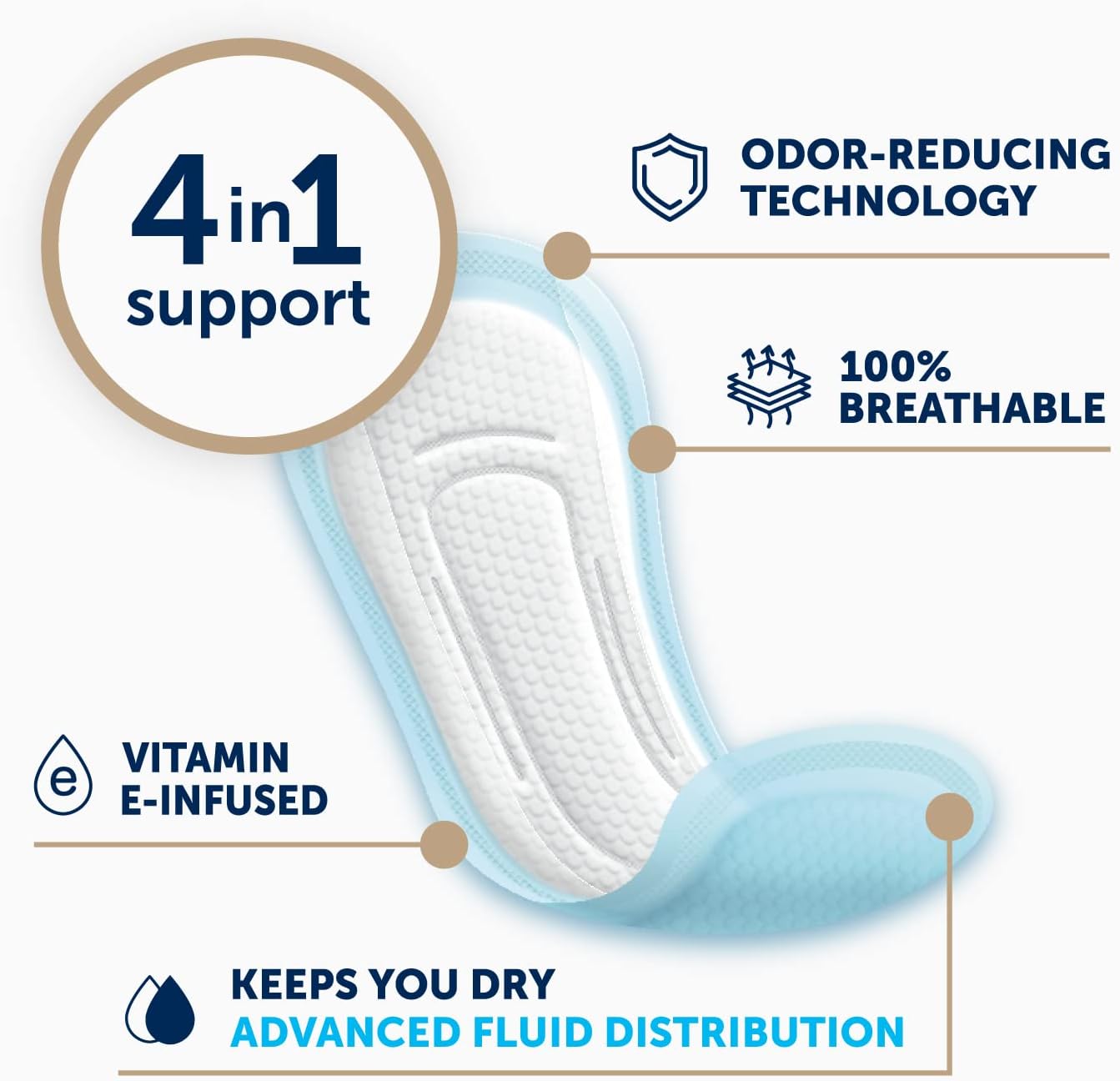 Bladder control pads for women with a unique, breathable design featuring the odor-reducing power of ARM & HAMMER Baking Soda and soothing vitamin E. Fresh Start liners keep you protected, dry and comfortable without skin-irritating dyes, chemicals or fragrances. These pads for women are 100% breathable.