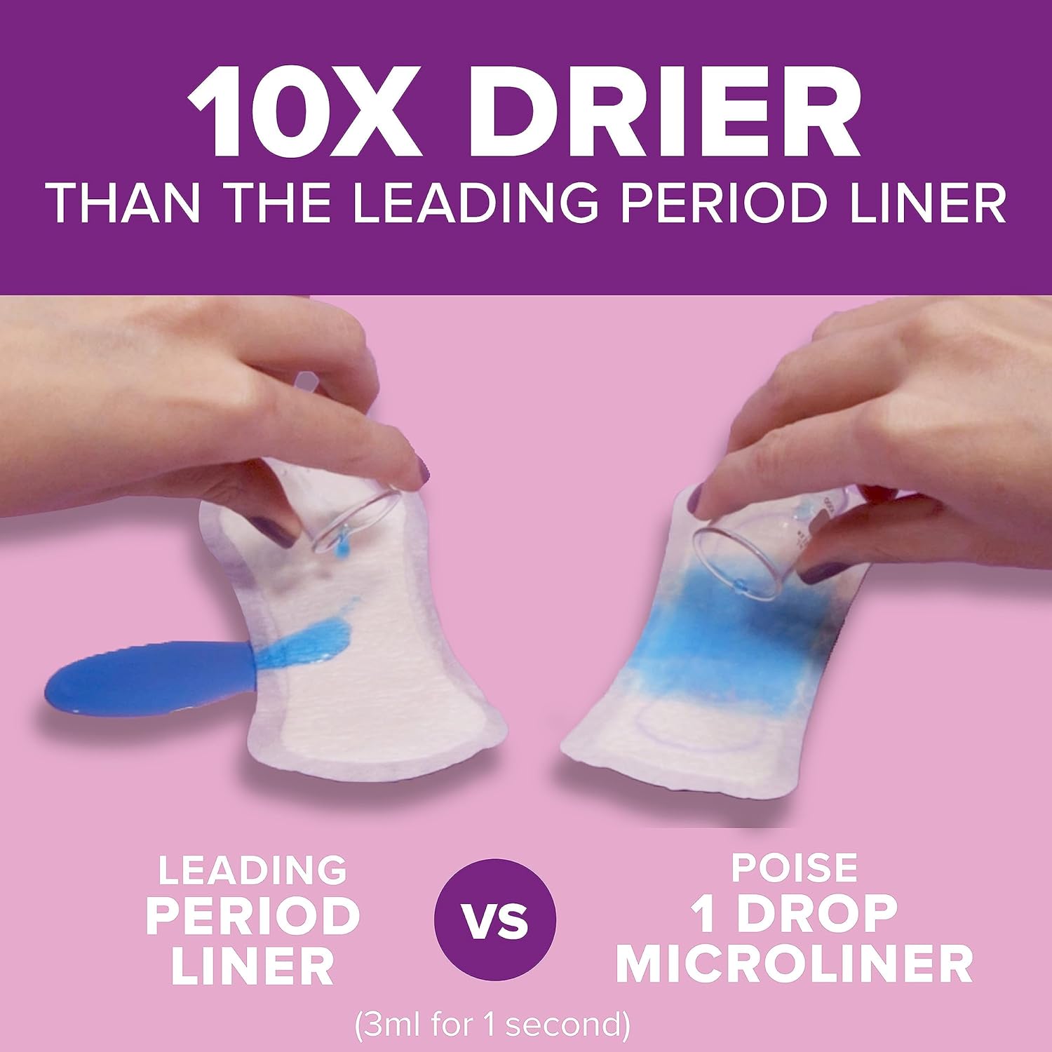 Say goodbye to discomfort from bladder leaks and hello to Poise Microliners, a panty liner that is designed for your comfort and protection. Poise incontinence panty liners for women are made specifically for bladder leaks unlike period pads, which are meant for menstrual needs. In fact, Poise liners keep you 10x drier than the leading period liner. They absorb bladder leaks, lock away wetness, and neutralize odors and are also made with breathable materials that help eliminate dampness, so you feel clean and fresh too! Poise bladder control panty liners are discreet and fit securely in your underwear. Our incontinence panty liners are available in very light absorbency, and Poise microliners are available in Lightest absorbency. For heavier absorbency needs, check out Poise Incontinence pads. Shop for Poise discreetly by having it shipped directly to your door or pick up curbside. Poise adult incontinence products are HSA/FSA-eligible in the U.S. *Satisfaction guaranteed or your money back: Online access required. Limit 1 per household. Original receipt/UPC required. Restrictions apply. See Poise website for details.