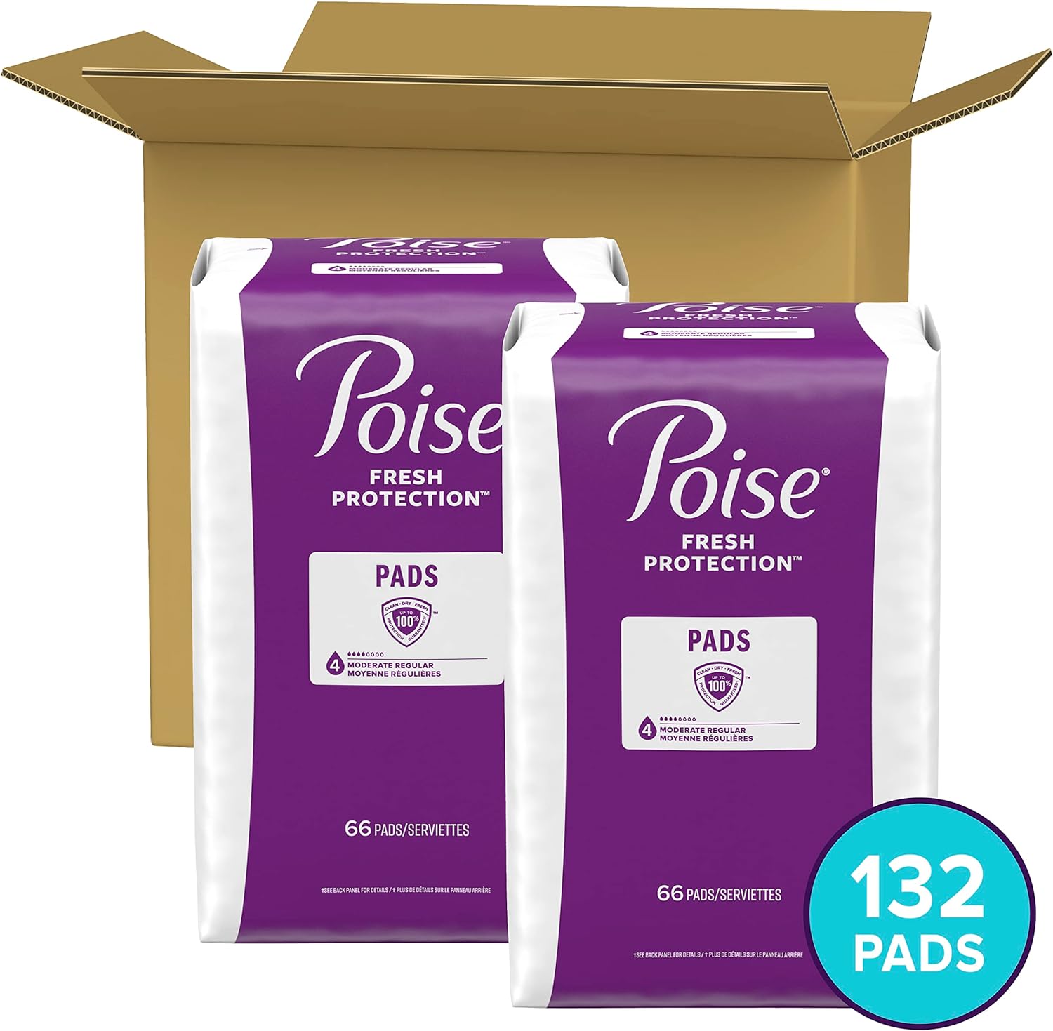 Poise Incontinence Pads & Postpartum Incontinence Pads, 4 Drop Moderate Absorbency, Regular Length, 132 Count (Pack of 2)