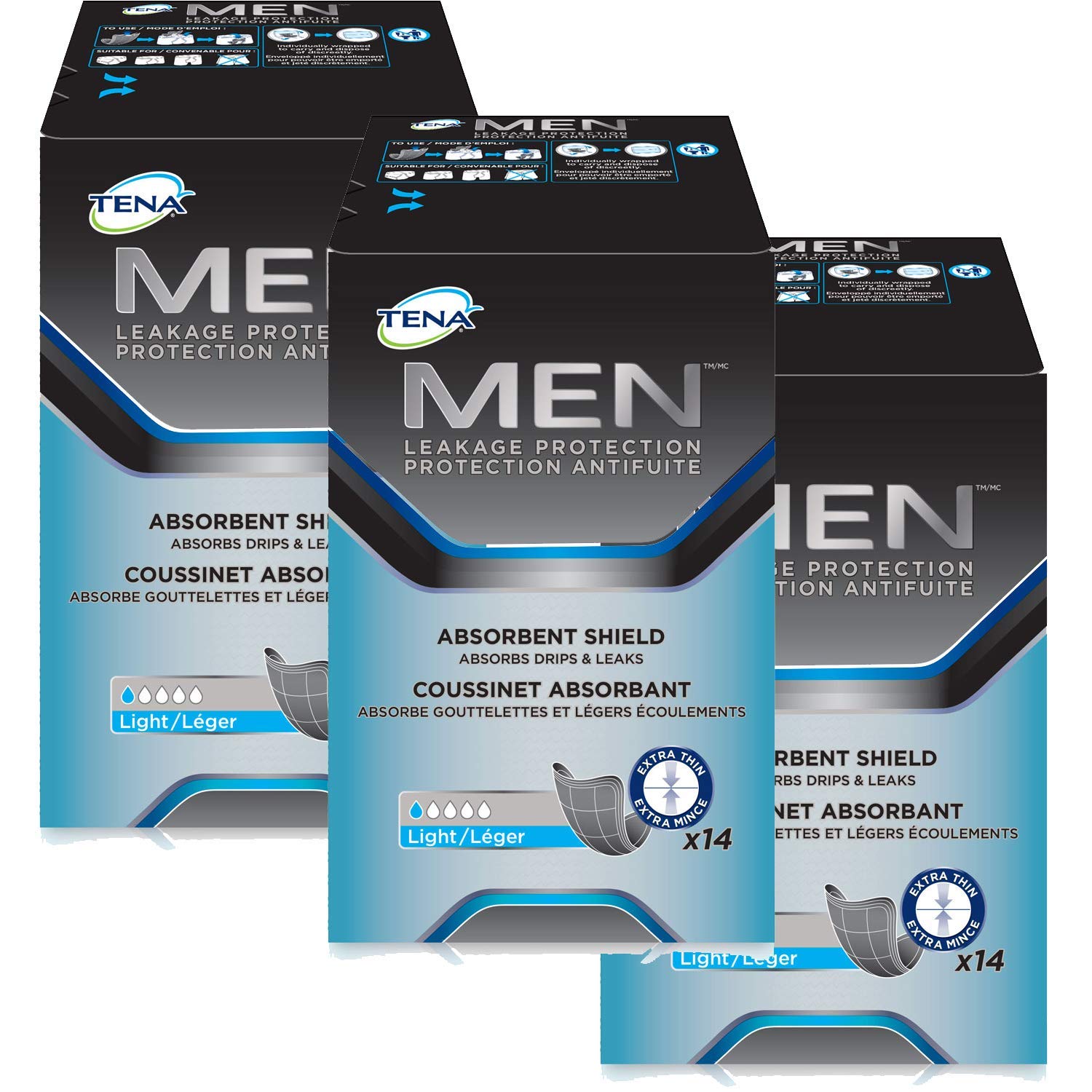 You're not alone. An estimated 3.4 million men experience the Unexpected Leak. TENA MEN Level 0 is ultra-thin, secure with a cup shape that follows the male anatomy for a secure fit that provides light protection. Designed with an ultra thin thickness for comfort and a muted color for discretion, this product will protect against light drips and dribbles while letting you remain comfortable and secure. TENA MEN Very Light Protective Shield is anatomically designed for men with an ultra absorbent core for dryness and effective leakage protection. Tena Protective Shield's soft, cloth-like outer cover provides comfort and discretion and is designed to help reduce odor.