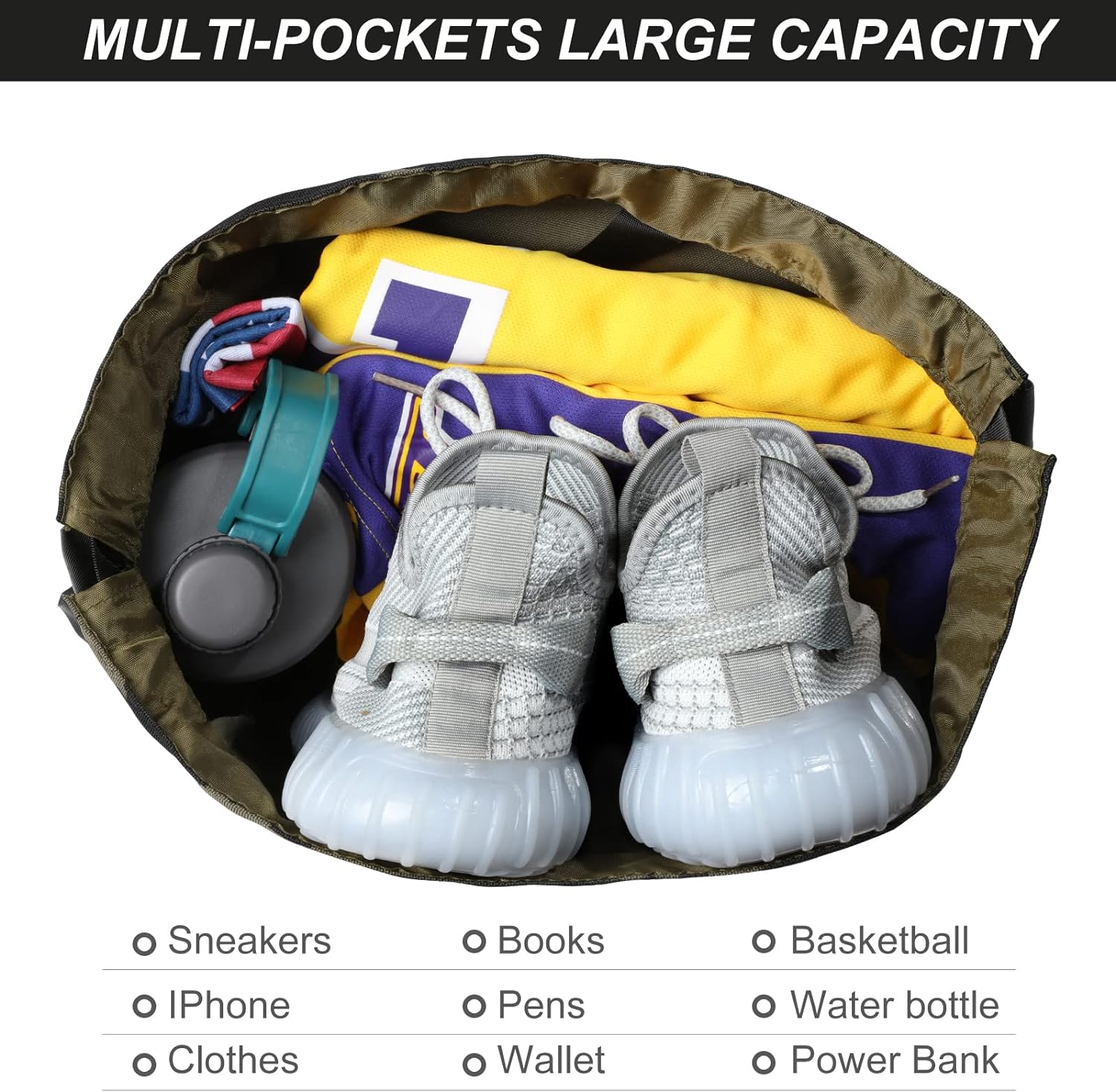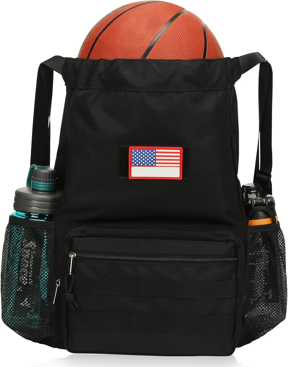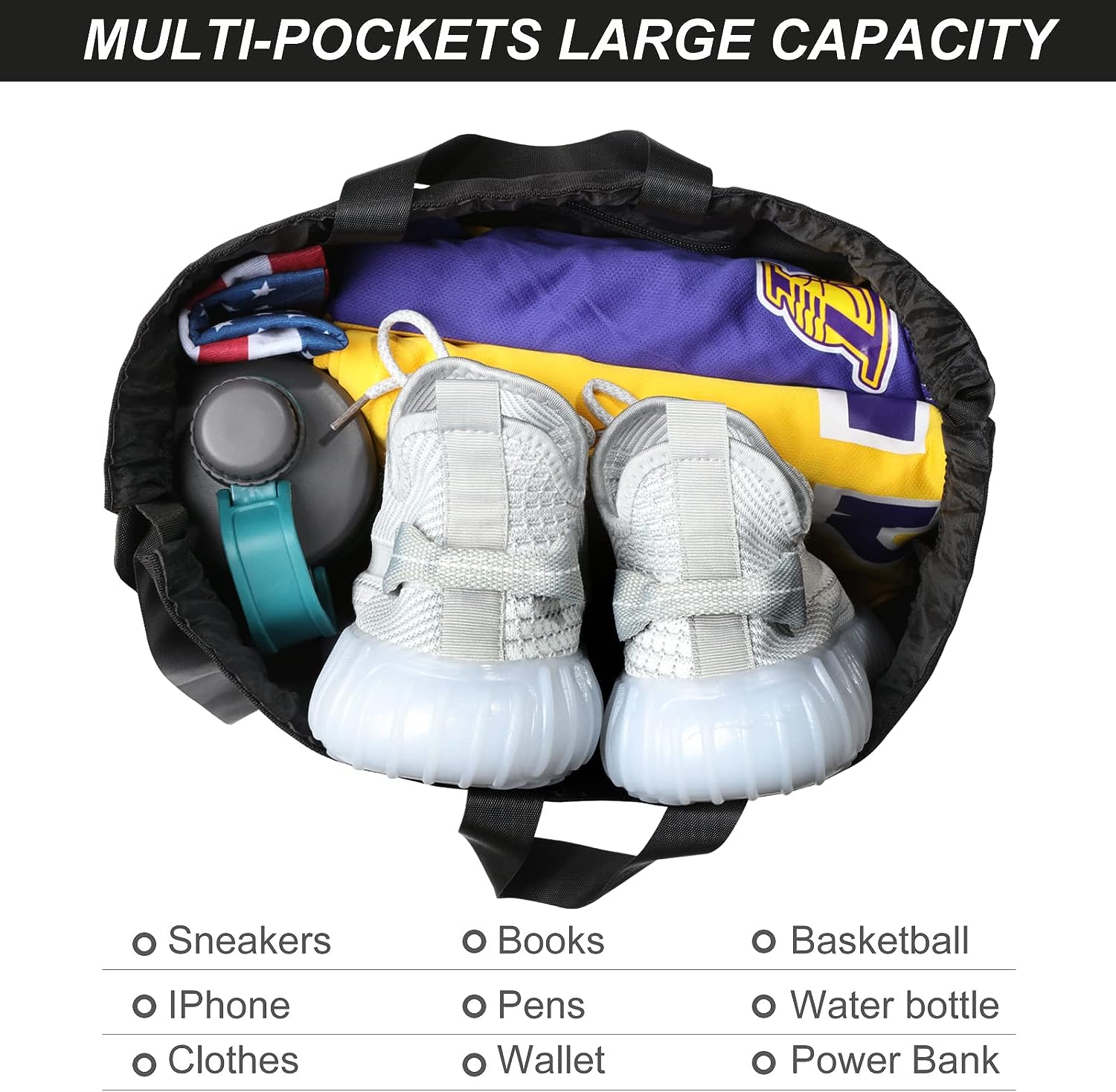 • 【MULTI-FUNCTIONAL POCKETS】In addition to the main pockets, it has 2 front pocket + 2 side net pockets + 1 inside zipper pocket. Front pocket of string backpack can keep an iPad, towel, and other items. basketball backpack have two side pockets for water bottles, baseball bats, umbrellas or whatever else. Inner zipper pocket for holding small valuables such as sport watch, wallet, cellphone to prevent any pickpockets.