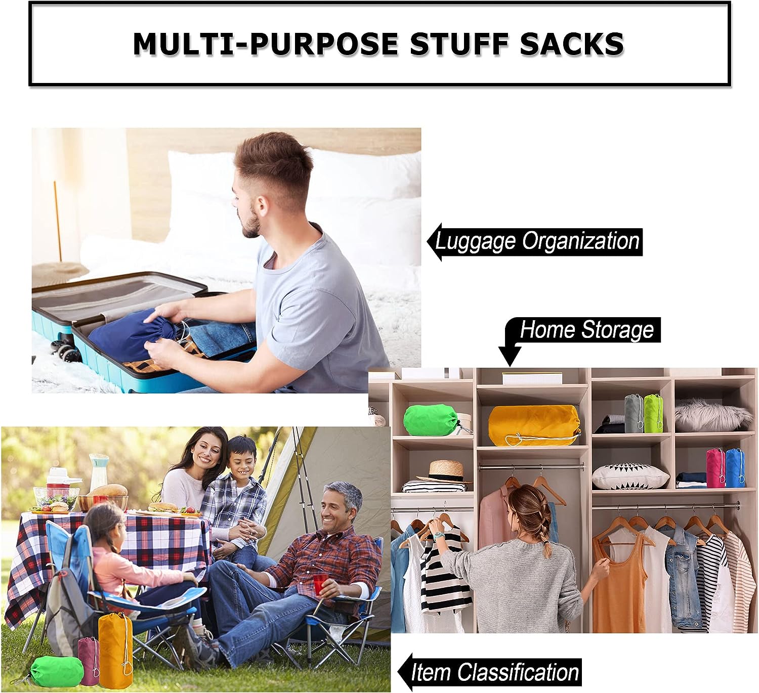 Multifunctional Stuff Sacks: Suitable for traveling, camping, hiking and swimming, these drawstring pouch can be applied to carry your outdoor products, camping gear, food, towels, shoes and so on.