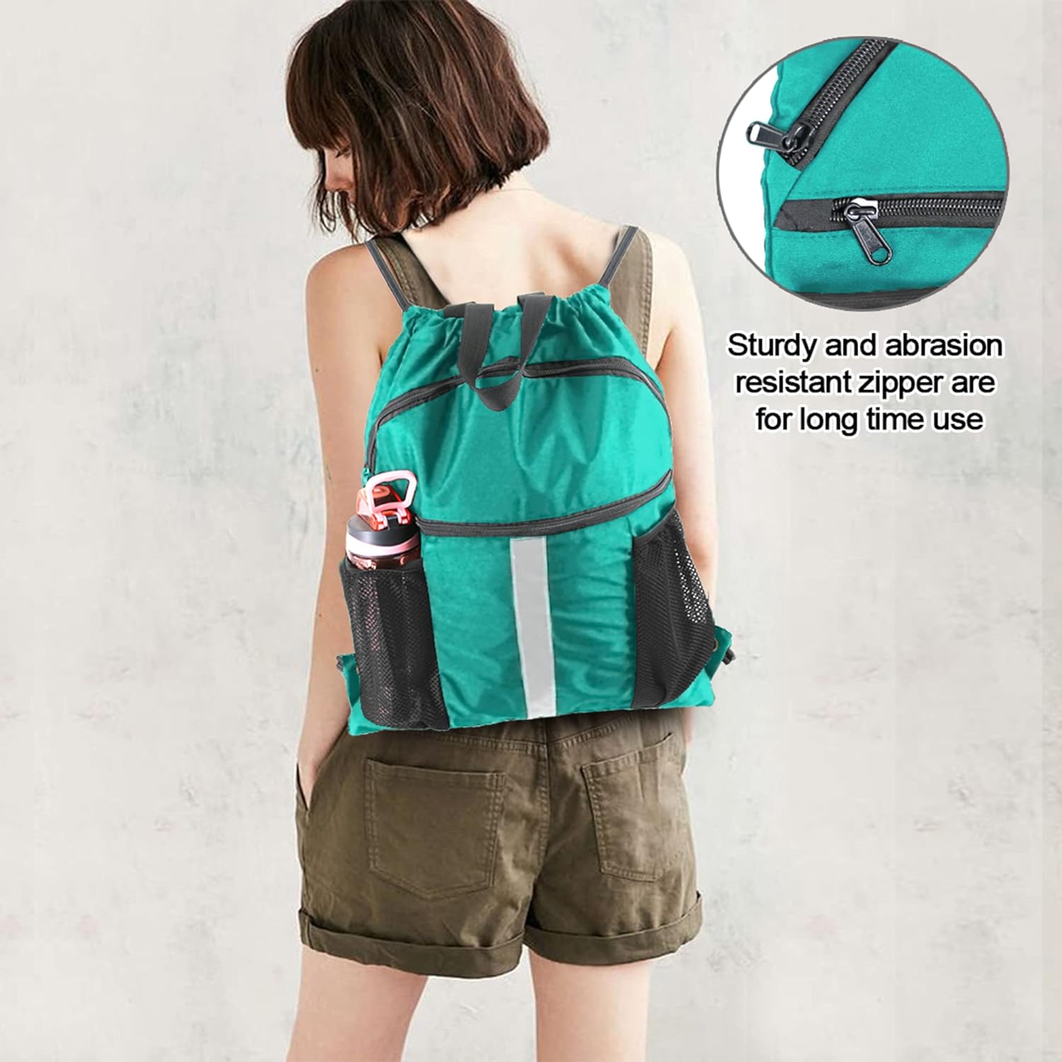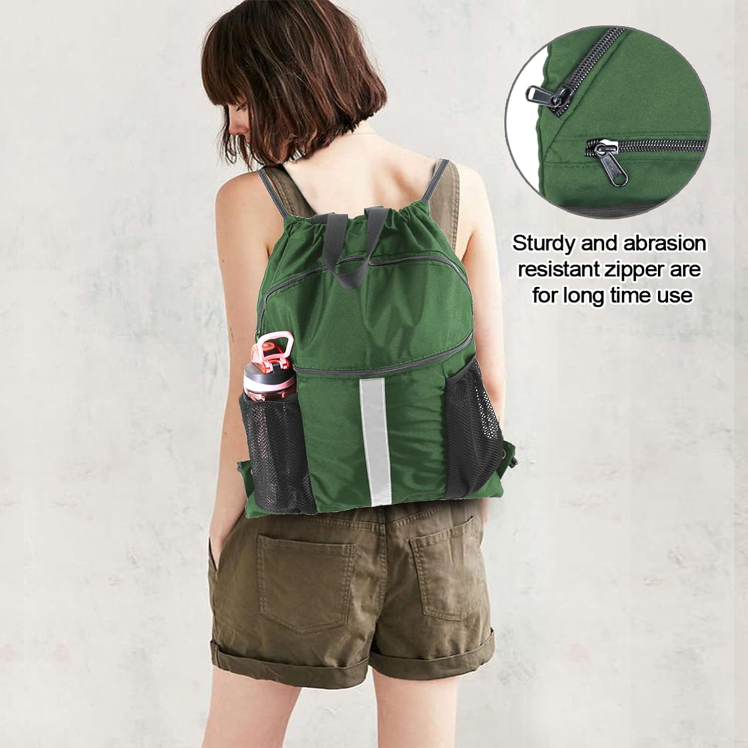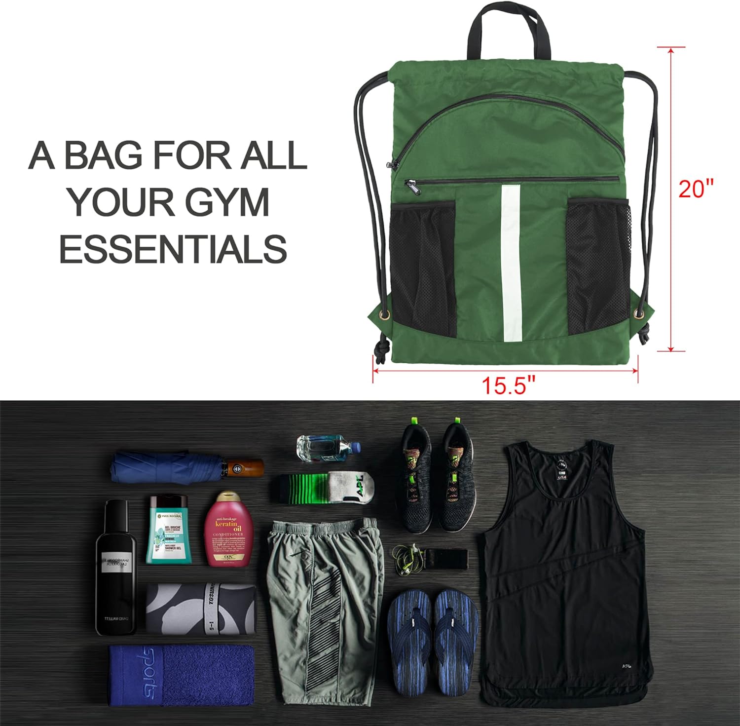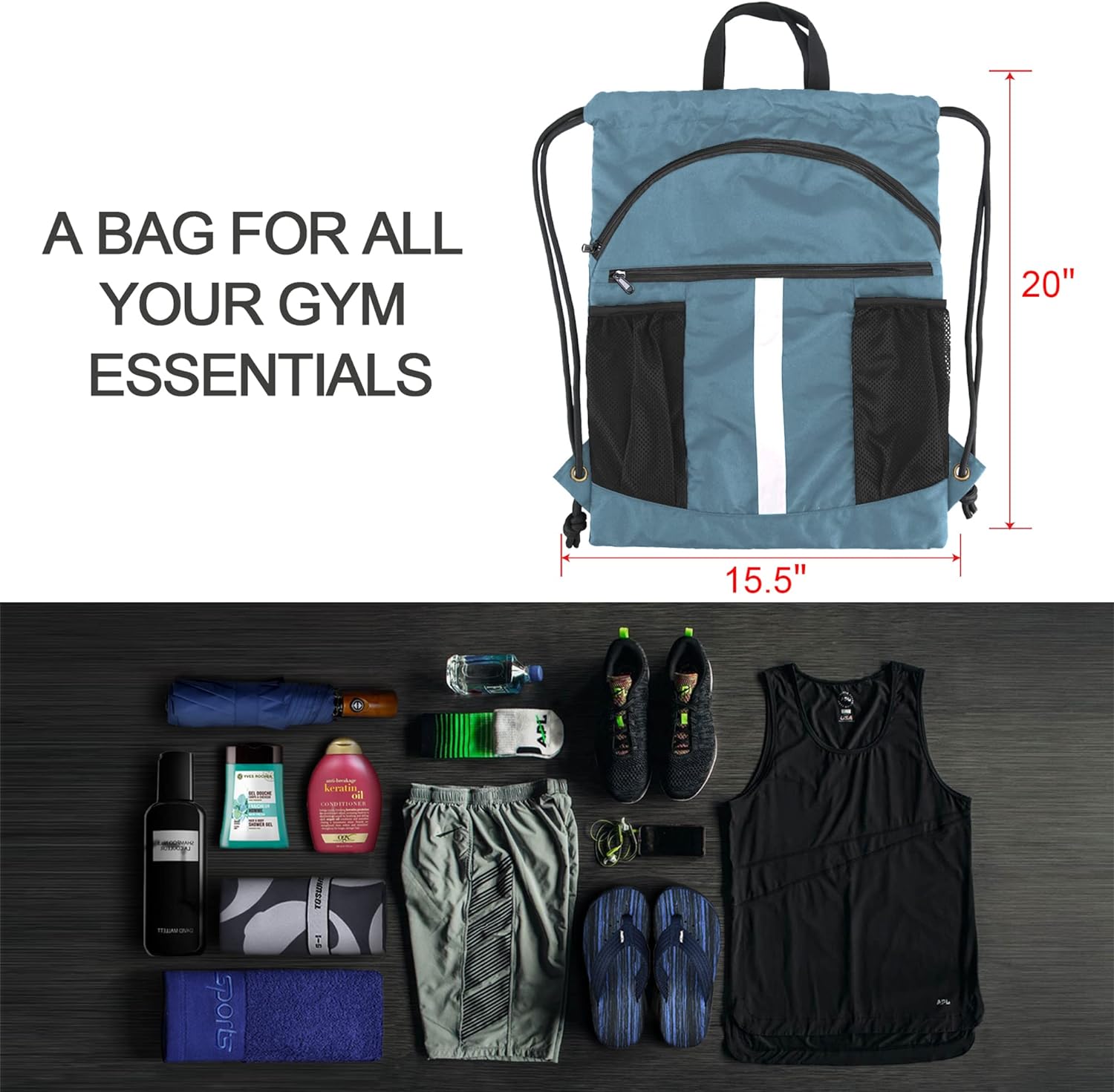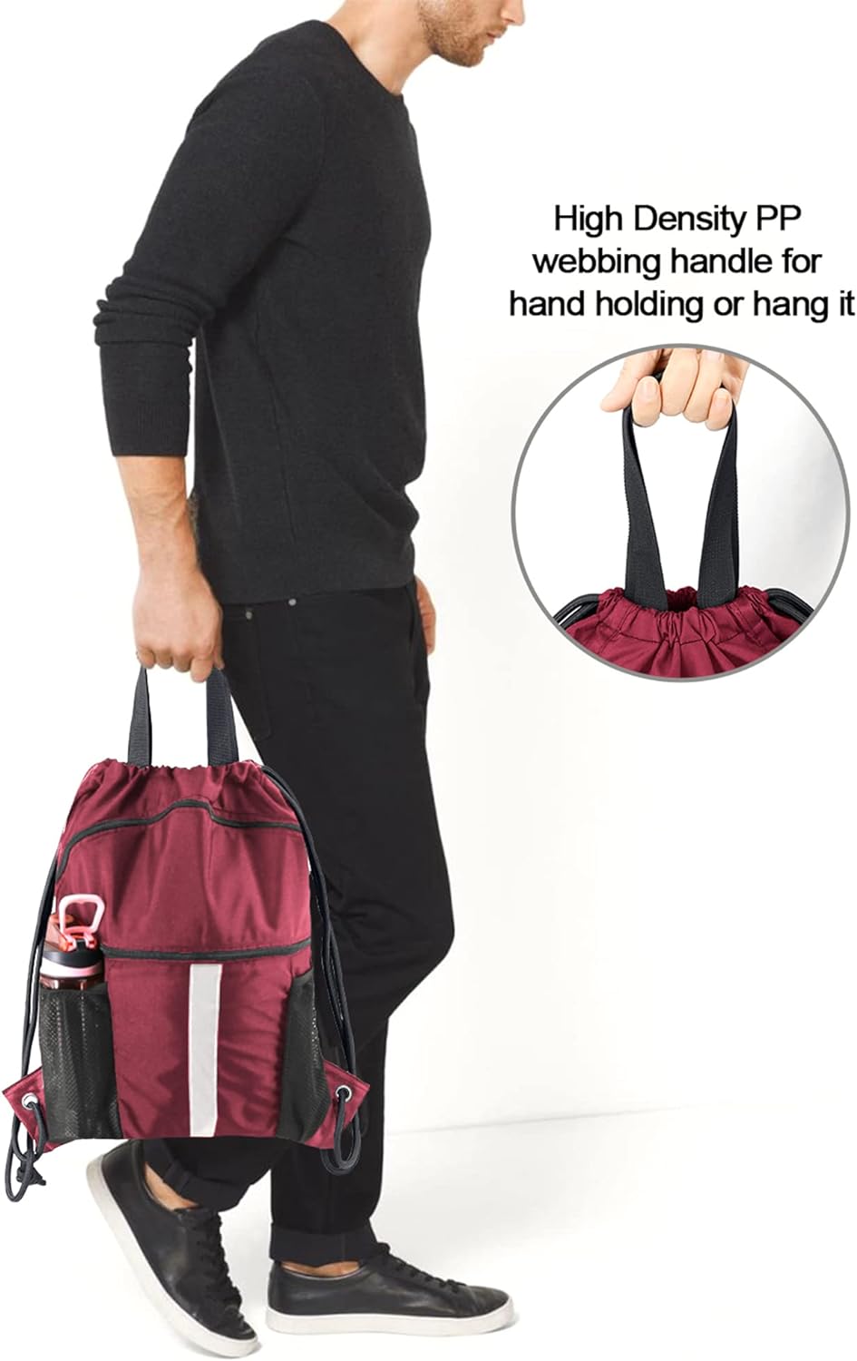• Convenient Multi Pockets: The big shoe compartment in front of draw string sport bag can hold two pairs of shoes; the smaller zipper front pocket is perfect for keeping an ipad, towel, and other items, besides, two sides mesh bags allow you to place a water bottle, umbrella easily. Inside of cinch bag, the zipper pocket can hold small valuables such as wallet, cellphone, keys and so on. Multiple Pockets help you to keep things to be placed by category, easy to be found.