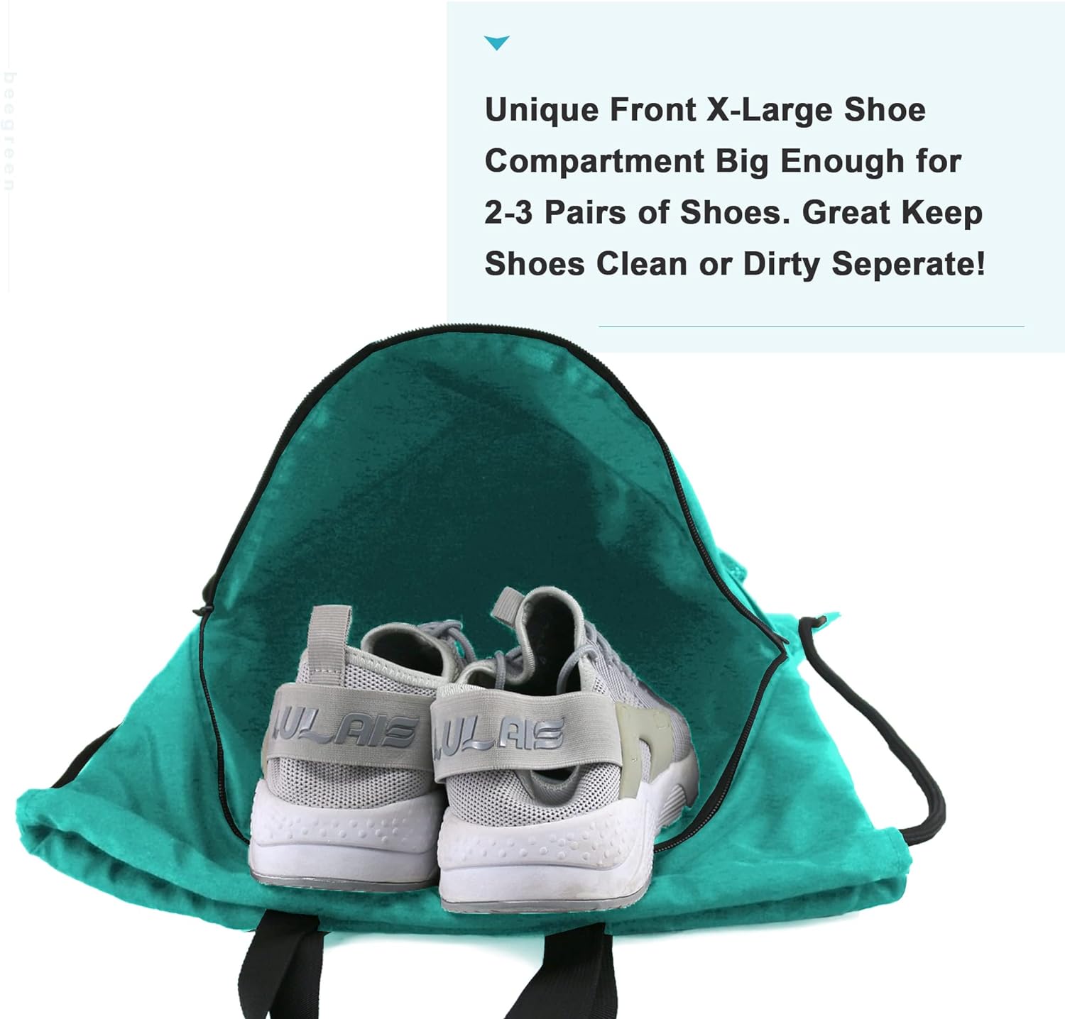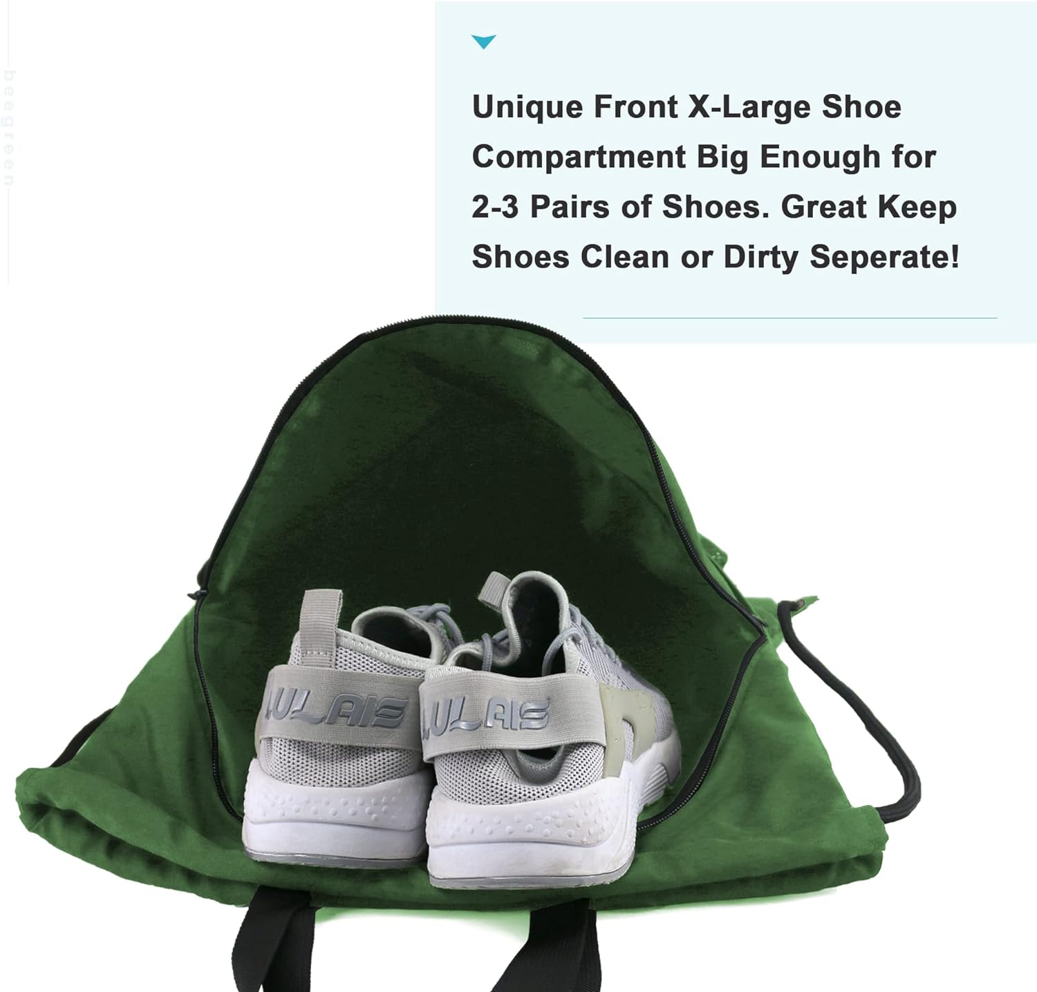 BeeGreen Drawstring Backpack Bag with Shoe Compartment String Cinch Sackpack for Unisex