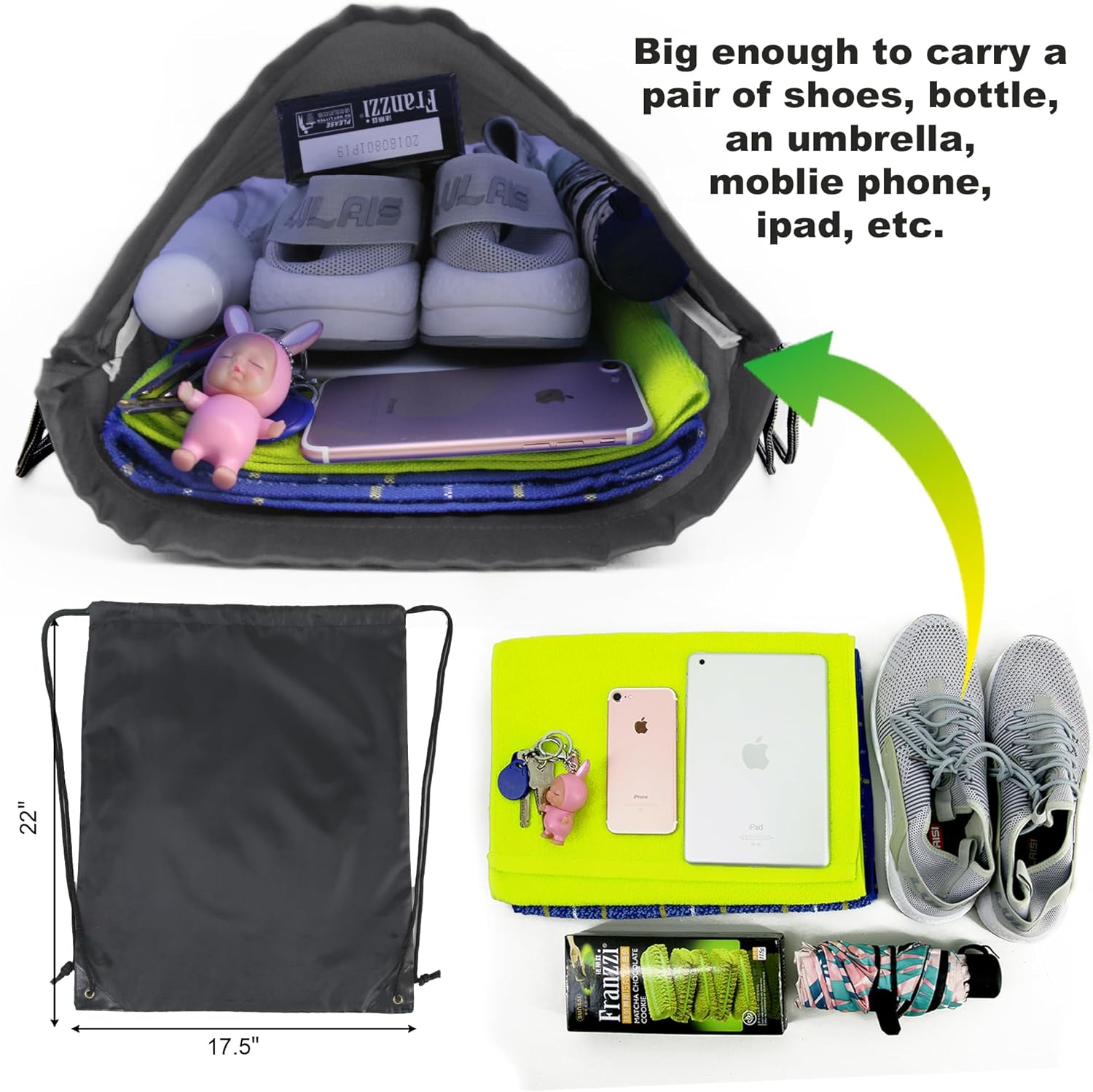 • LARGE CAPACITY: Drawstring backpack bags bulk measures 22.4” L x17.5” W, perfect size for carrying items like exercise clothes and shoes, towels, water bottles, other various snacks.