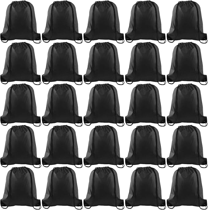 KUUQA 25Pcs Drawstring Backpack Bags String Backpack Sport Bag Sack Cinch Tote Gym Backpack Bulk for Gym Sport Traveling, Black