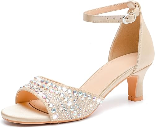 DADAWEN Women's Dressy Rhinestone Low Kitten Heel Ankle Strap Open Toe Sandals Dress Shoes Pump Sandals for Wedding Party Evening