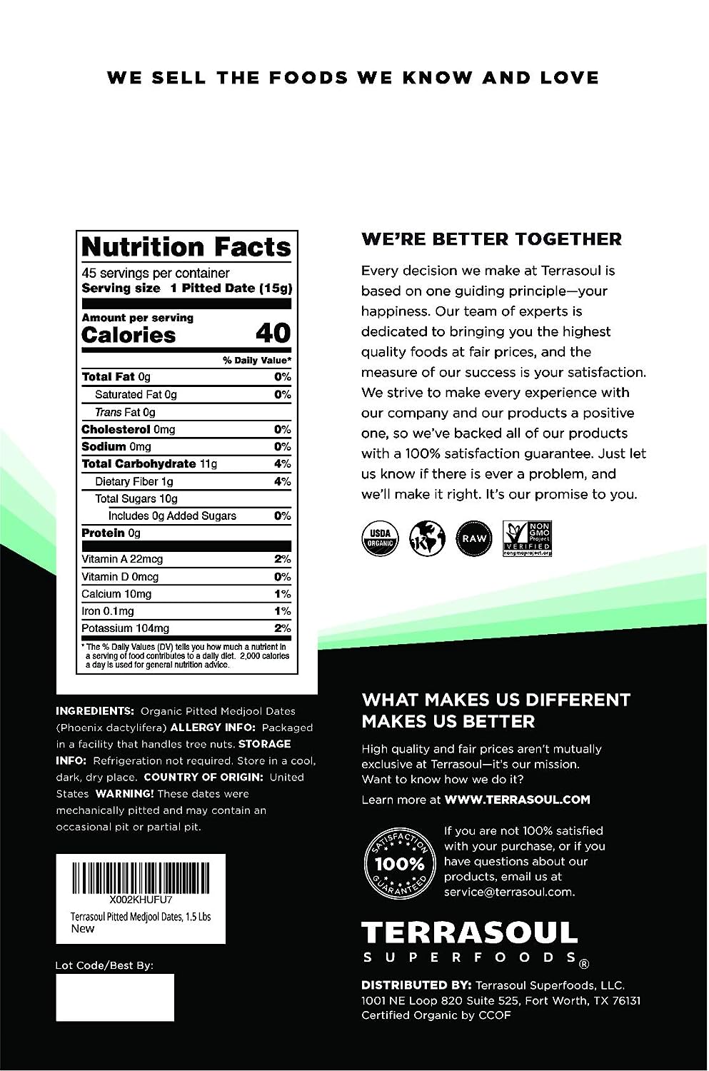 Terrasoul Superfoods Organic Pitted Medjool Dates, 1.5 Lbs - Pits Removed | Soft Chewy Texture | Sweet Caramel Taste