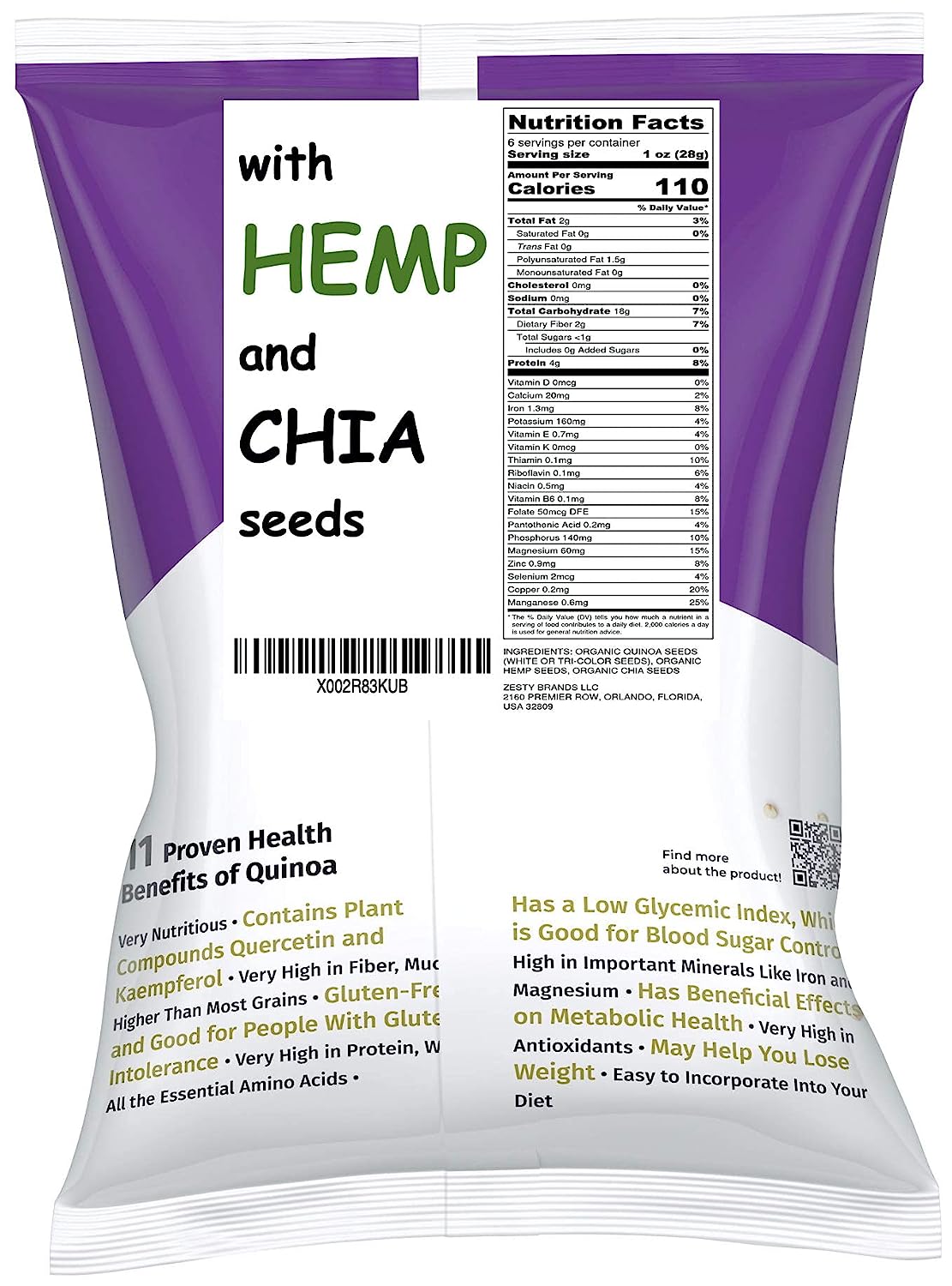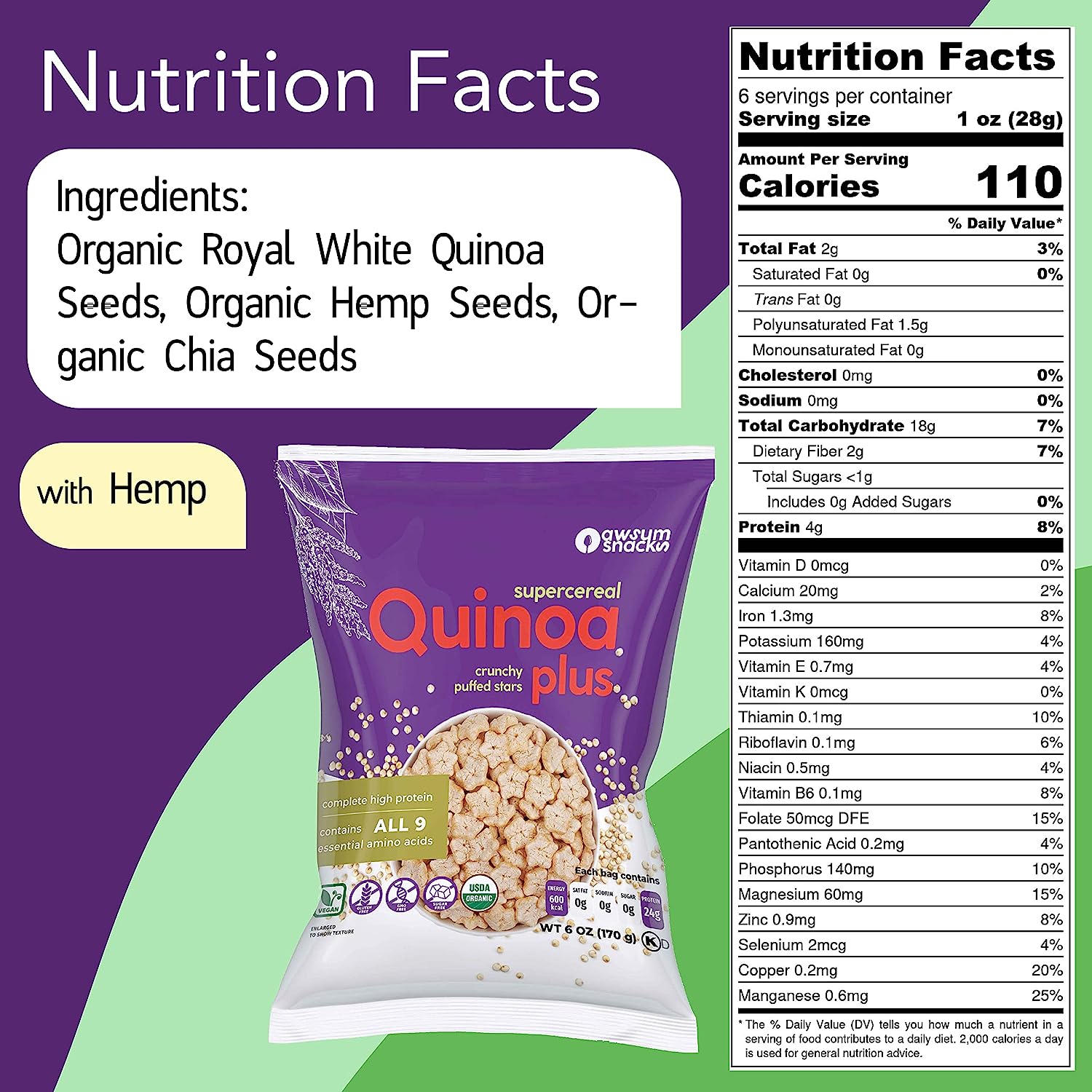 • Very High in Fiber, Much Higher Than Most Grains! Great after training sport diet snack for adults. No added Flavors, only Quinoa!