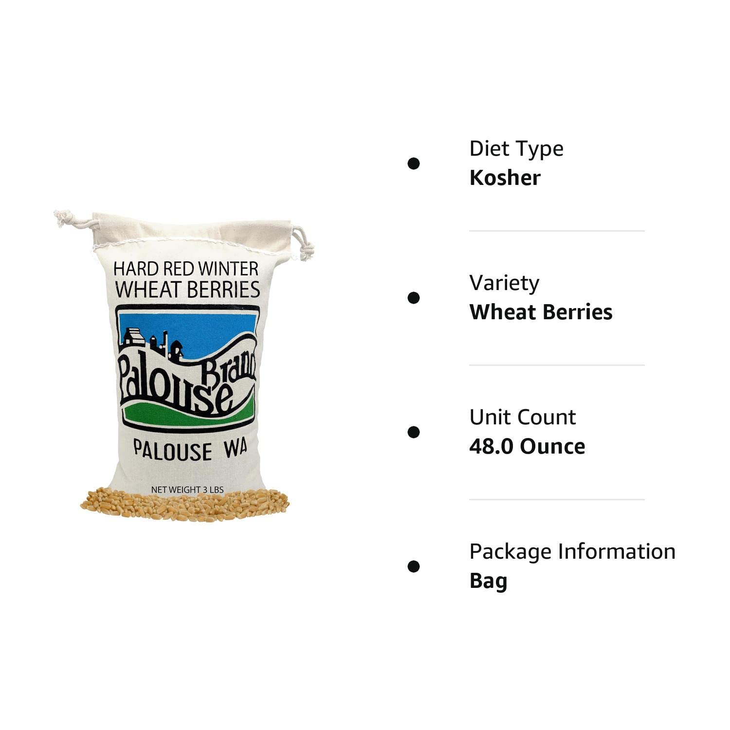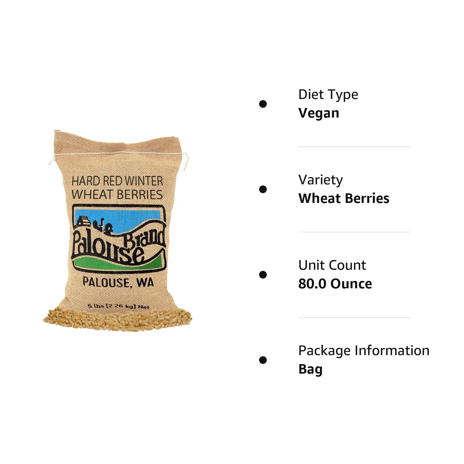 Hard Red Winter Wheat Berries | Family Farmed in Washington State | Non-GMO Project Verified | 5 LBS | 100% Non-Irradiated | Certified Kosher Parve | Field Traced | Burlap Bag