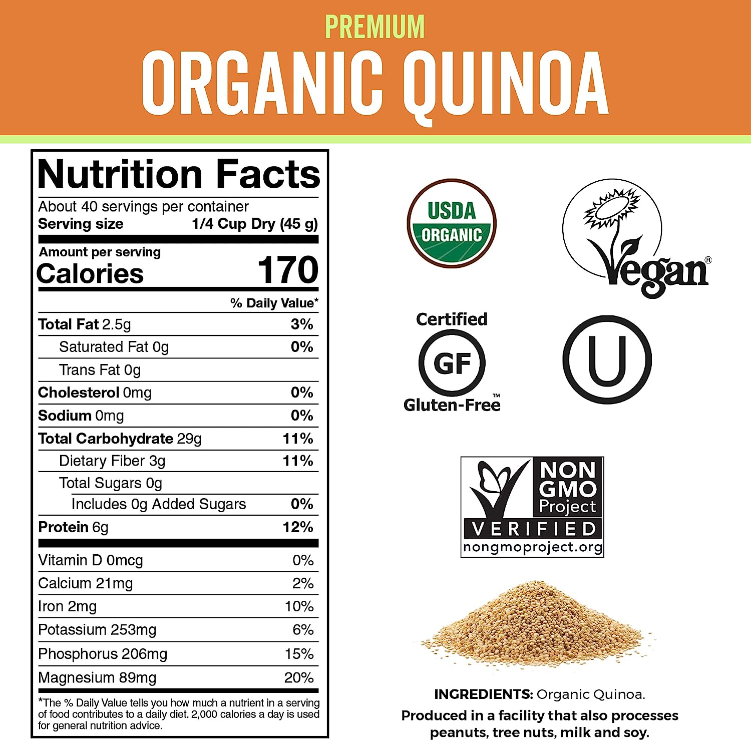 Organic Quinoa (4 lb) - Gluten Free and Vegan Complete Plant Protein, Easy to Use Source of Fiber and Iron, USDA Organic and Pre Washed, Non-GMO Whole Grain Rice and Pasta Substitute
