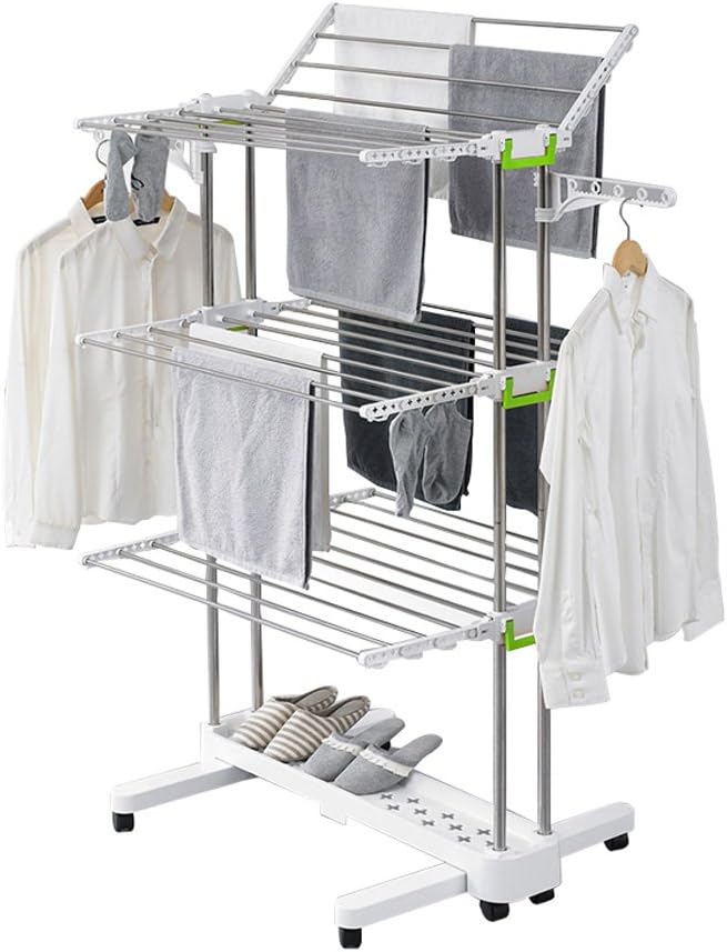 BR505 3-Tier Collapsible Clothes Drying Rack with Casters, Laundry Drying Rack, Stainless Steel Hanging Rods, Indoor & Outdoor Use