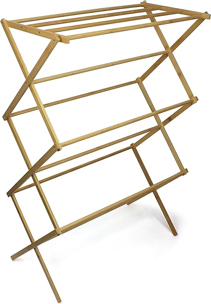 Brookstone, Eco-Friendly Bamboo Drying Rack, Collapsible Laundry Clothes Hanger, 10 Hanging Bars, Minimalist Space Saving Design