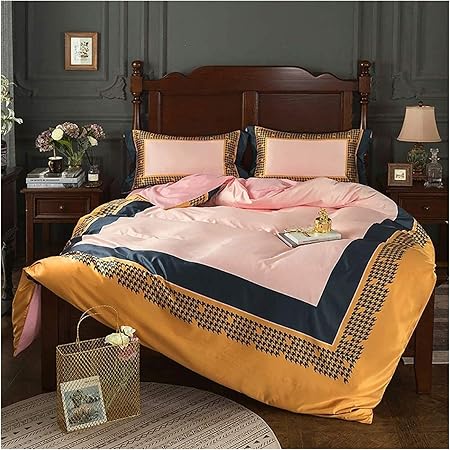4 Pieces Bedding Comforter Set, Sheets Pillowcases Grey Luxury Double Bed Duvet Covers Yellow Silk Bedding Sets King Size with Fitted Sheet Duvet Cover Cotton Satin Silk Soft Silky 4 Piece
