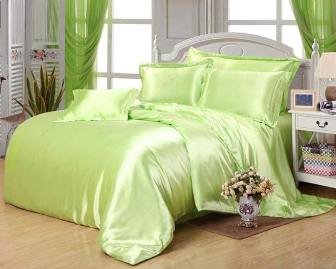 Bedding Sets King, Luxury Satin Silk Bedding Sets Duvet Cover Flat Fitted Sheet Twin Full Queen King Size 4pcs Linen Set Black 100% golden-12th_King Flat 4pcs