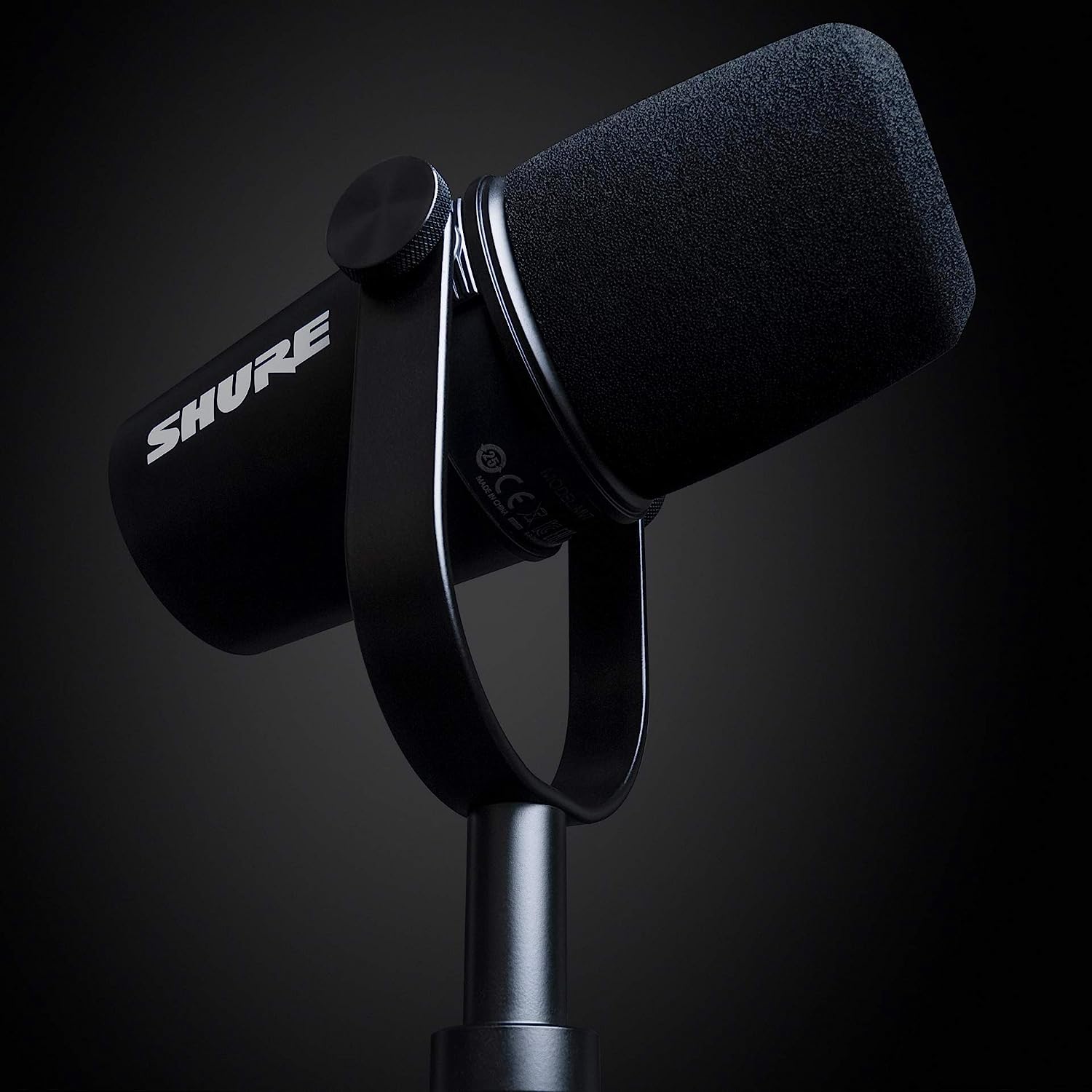 Shure MV7 USB Microphone for Podcasting, Recording, Live Streaming & Gaming, Built-in Headphone Output, All Metal USB/XLR Dynamic Mic, Voice-Isolating Technology, TeamSpeak & Zoom Certified – Black