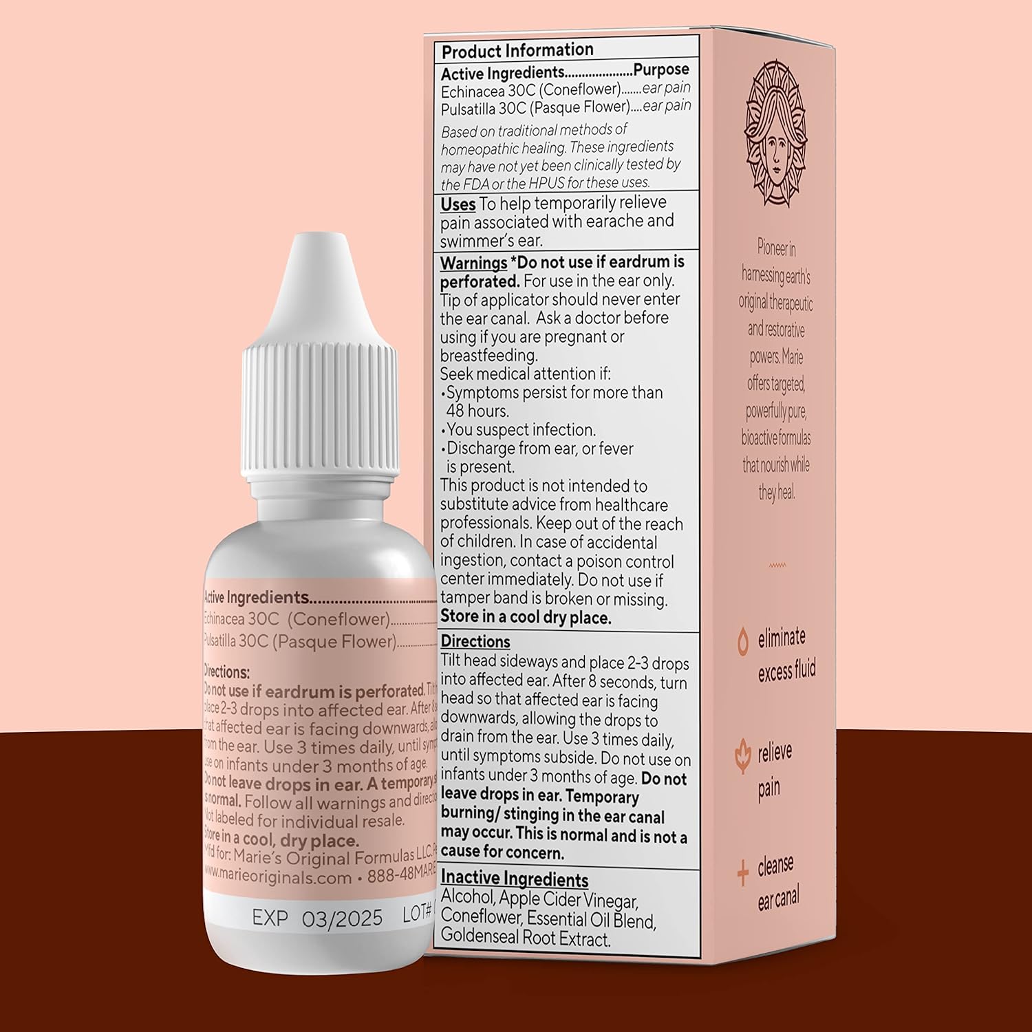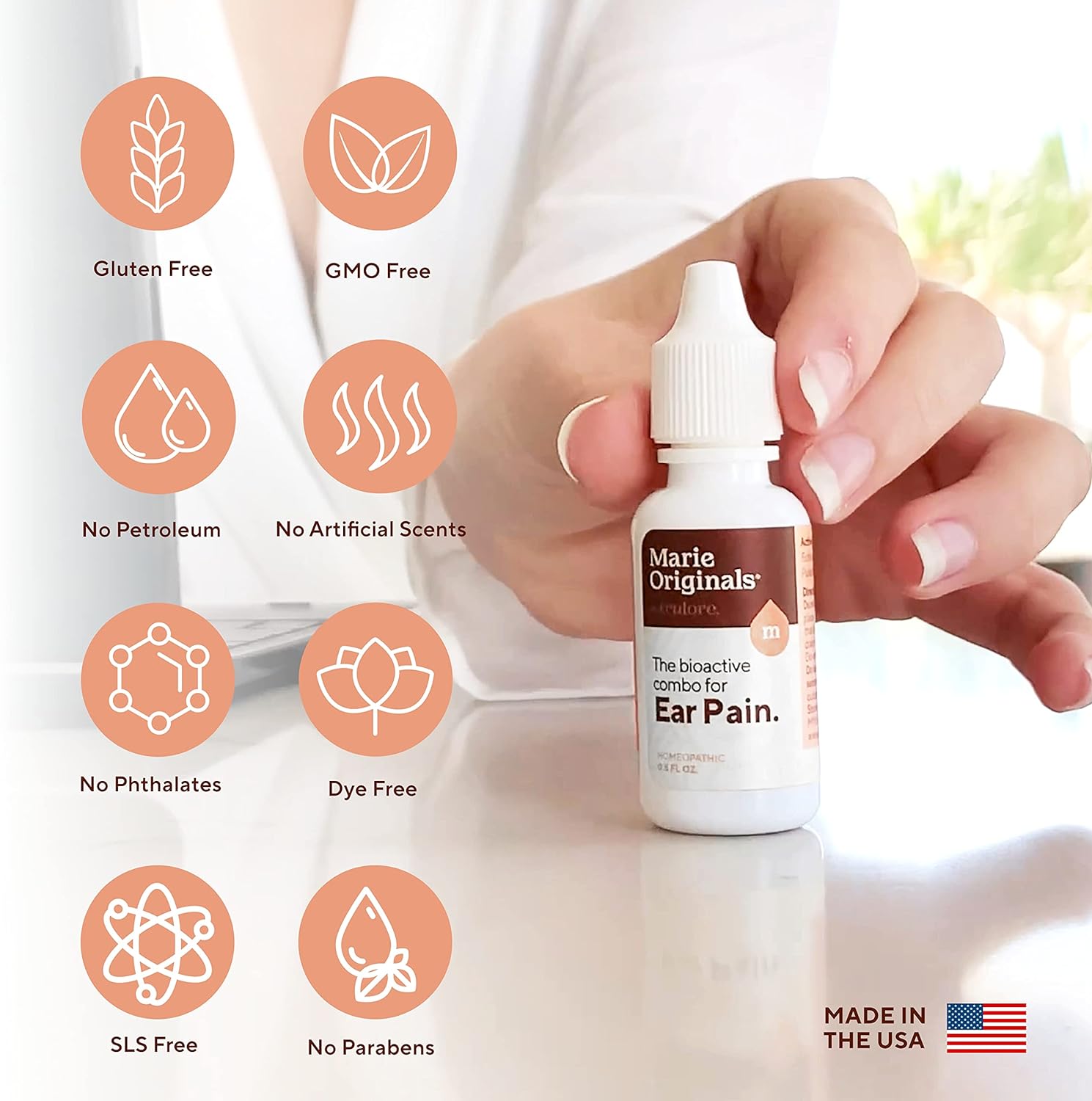 Natural Earache Drops for Ear Infection Prevention, Pain Relief, Swimmer's Ear - Ear Drops for Adults, Children - Made in USA | Marie Originals (0.5 Fl Oz (Pack of 1))