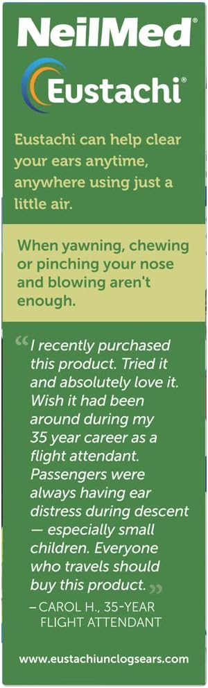 • QUICK, SAFE & EASY: Recommended and used by physicians, parents, chiropractors, airline pilots, scuba dive instructors, cold and allergy sufferers and more.Eustachi unblocks plugged ears by helping exercise the eustachian tubes, all you have to do is swallow! It's quick, safe and easy to use.
