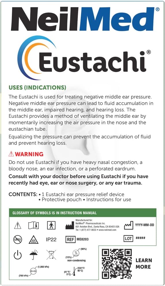 • USAGE: The Eustachi is a medical device that is indicated for the treatment of negative middle ear pressure. As with any exercise or conditioning product, consult your healthcare provider with any medical questions.