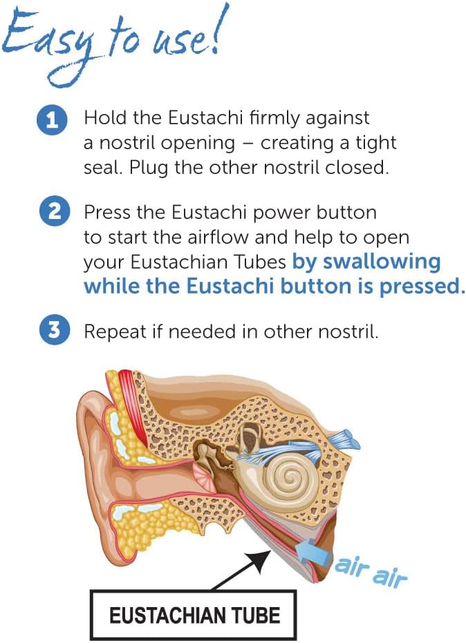 • EUSTACHIAN TUBE EXERCISER: Eustachi works with your body's natural mechanism for clearing your ears. Swallowing and yawning normally clear your ears