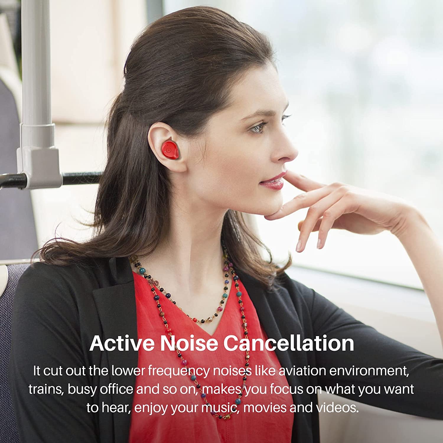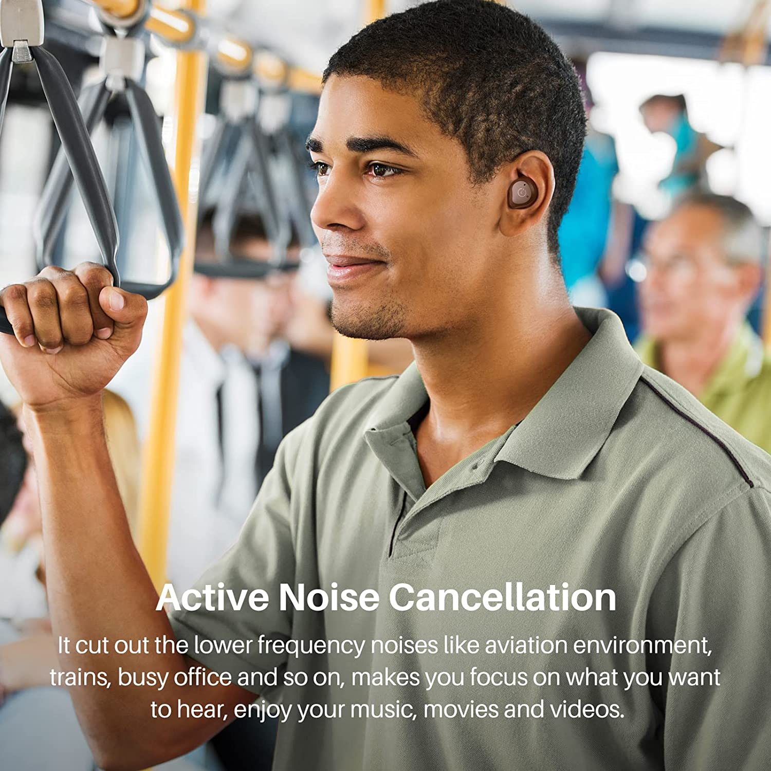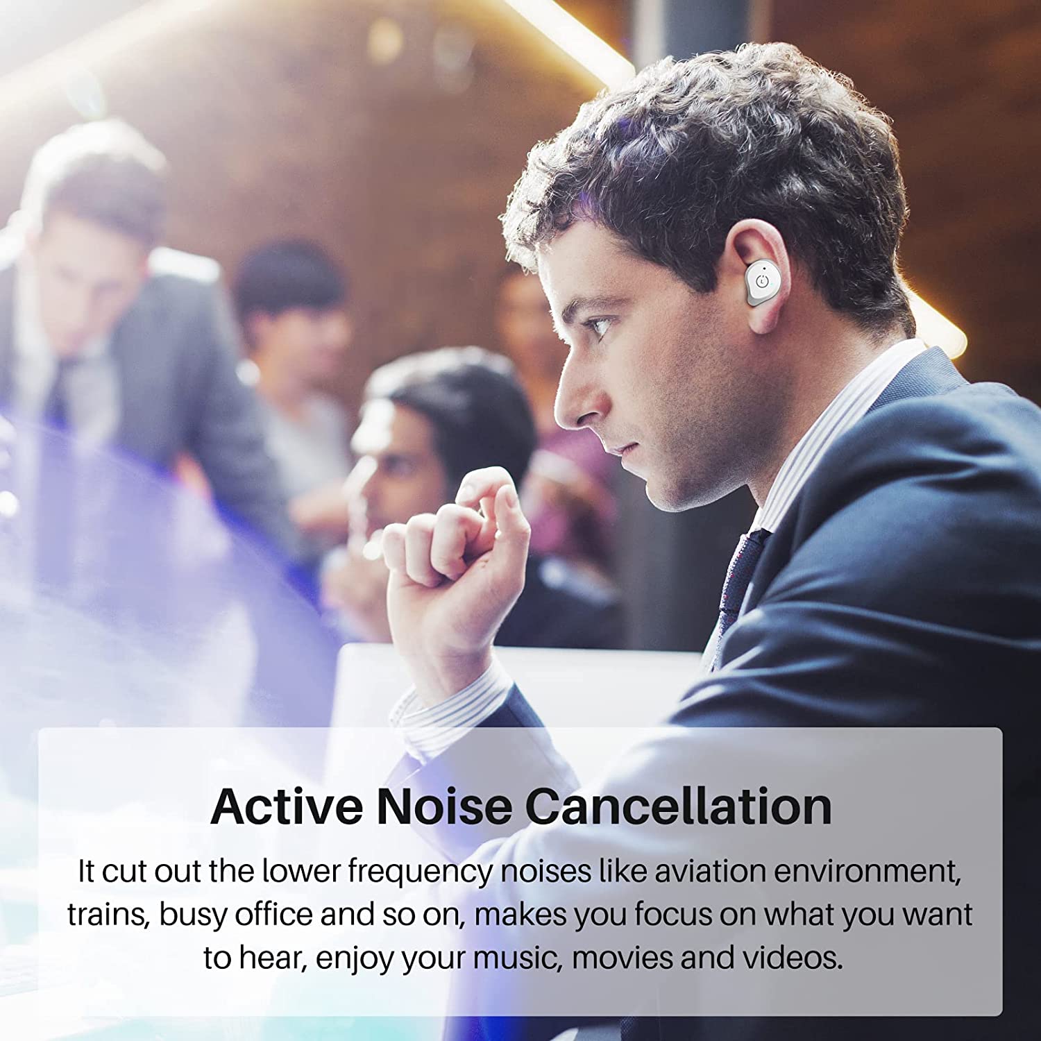 • 【Active Noise Cancellation】Hybrid 3 layer Active Noise Cancellation. 1. Outward-facing microphone detects external sounds and counter with equal anti-noise to first cancel noise. 2. Inward-facing microphone listens inside ear canal to pick up internal sounds and produce anti-noise again to twice cancel the left noise. 3. Ear caps prevent 90% noise going to ear canal.