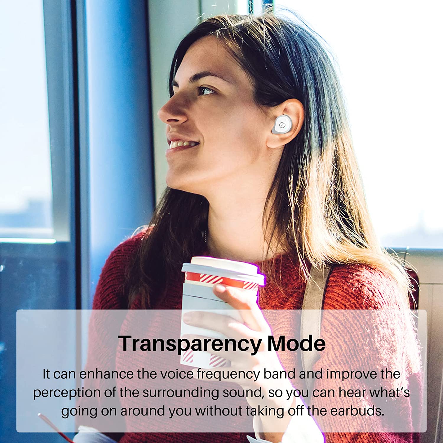 • 【Transparent Mode】You can hear what you want to hear, which lets outside sound in so you can hear and interact with the world around you. You can clearly hear the announcement of the airline or subway and what is saying around you without taking off the headphones.