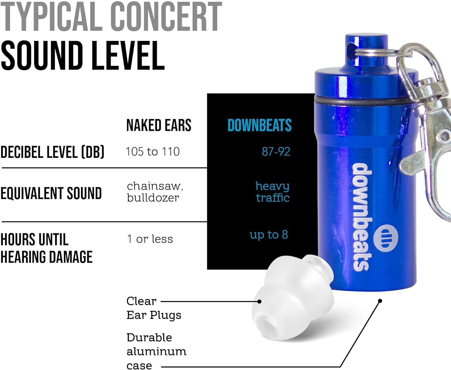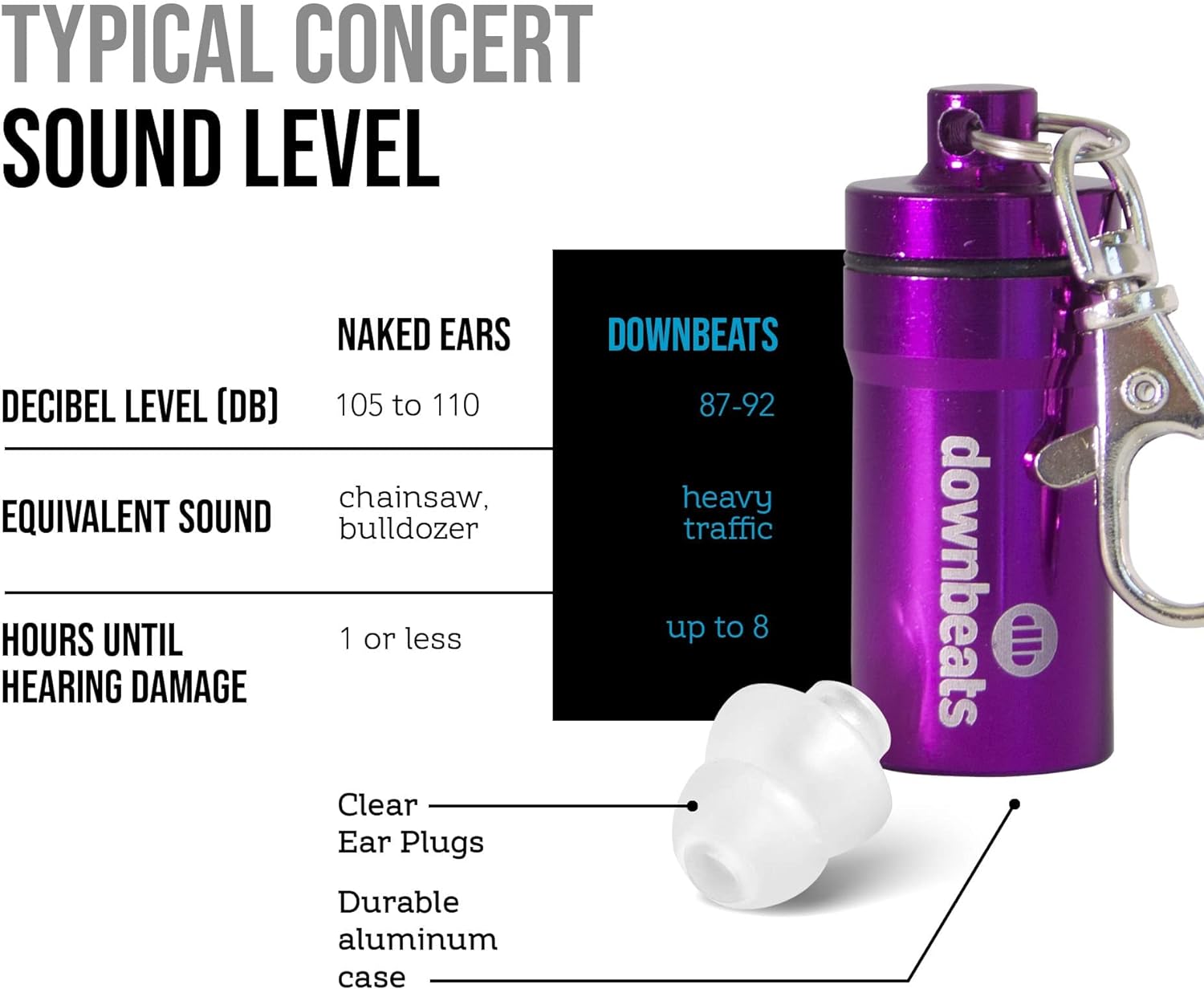 DownBeats are high fidelity hearing protectors that cut down the damaging noise that you don't want to hear while keeping and clarifying the great sounds and grooves that you do. You will still hear it all, just without the painful ringing later. DownBeats are not just ear plugs for concerts. They are sound filters, meaning you get the optimal conversation and music delivered to your ears at a safe level. DownBeats ear protection ensures that the music hits your ears perfectly while unwanted noises are left out in the crowd. The rugged aluminum case for the ear plugs also makes sure that your ears are protected anywhere you go. Whether you are playing music in a band, riding a motorcycle, or just rocking out in the crowd, have fun longer with DownBeats, the best and most reliable ear plugs for concerts and hearing protection for music around.