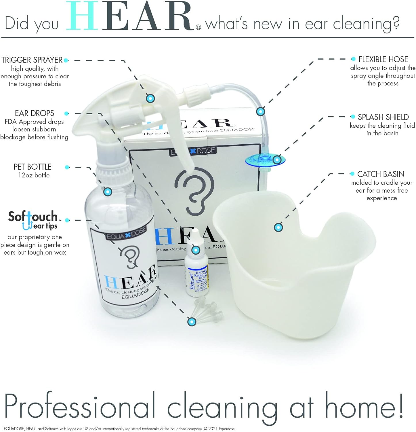 Hear Earwax Removal Kit from Equadose. Ear Wax Remover for Ear Cleaning and Irrigation.