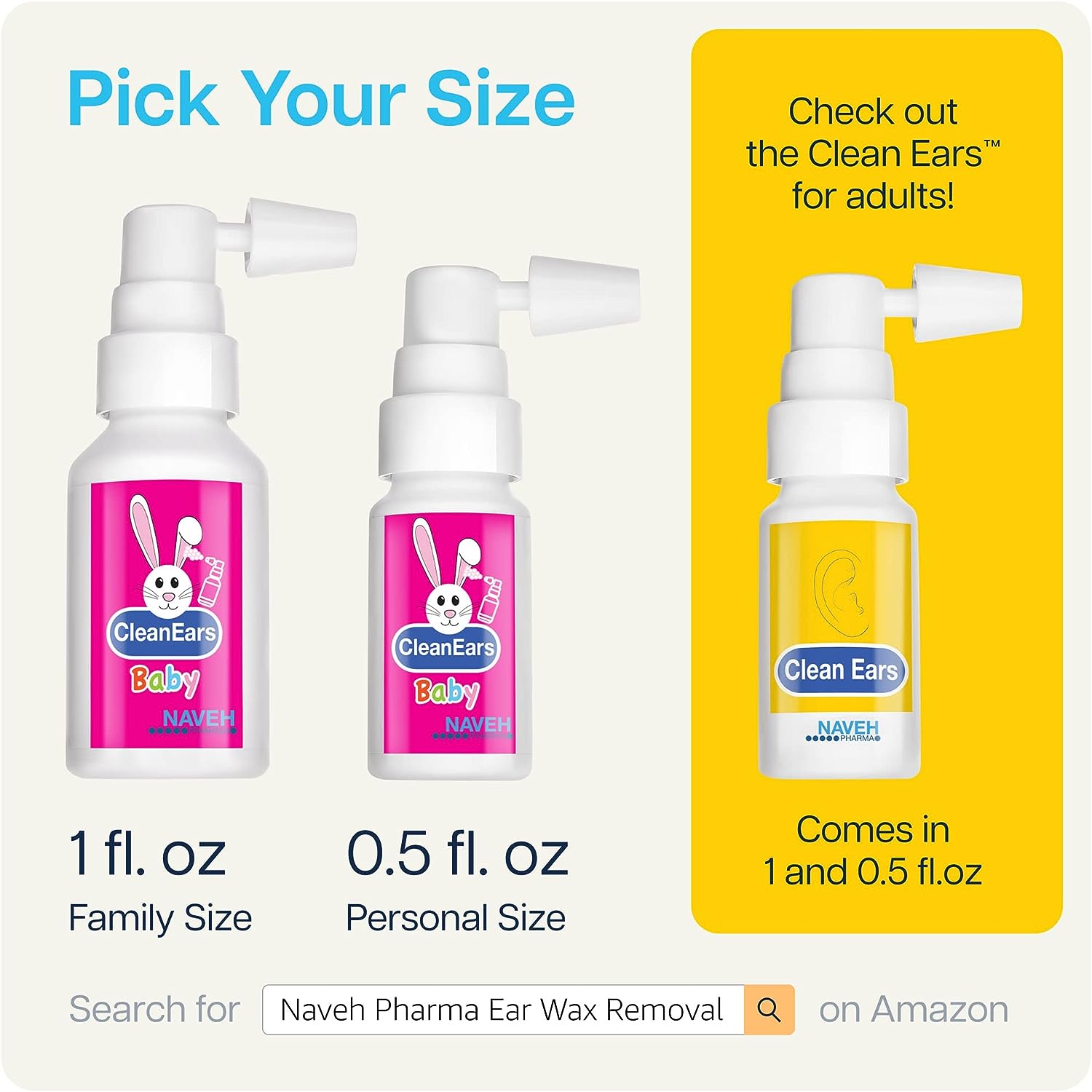 NAVEH PHARMA CleanEars Baby | Ear Wax Removal Kit Spray Ear Wax Softener Cleaner Ear Irrigation and Wax Dissolution | All-Natural Formula | Nonirritant – for Kids and Adults | 0.5 Fl Oz