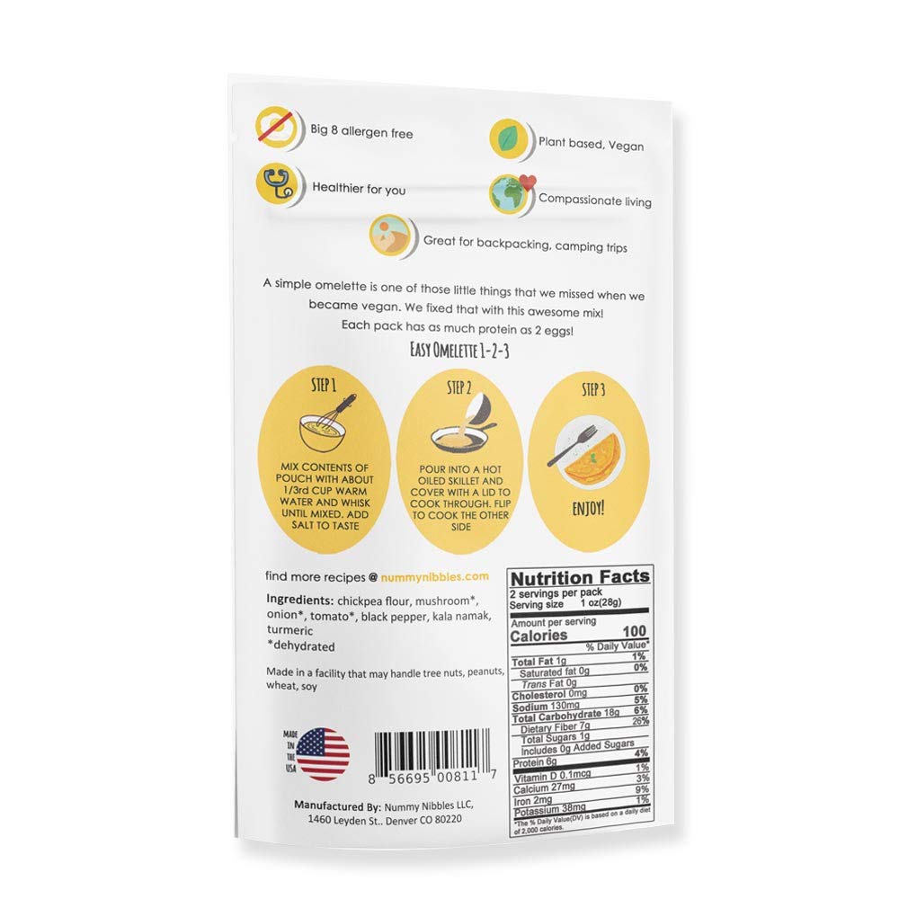 Certified Vegan Egg Mix - Nummy Nibbles Egg Substitute for Omelets and Scrambles-Variety 3-Pack(3x2 oz Packs)-Made with Chickpea Flour,Protein Packed,Non GMO,Soy Free-Plant Based Breakfast made easy