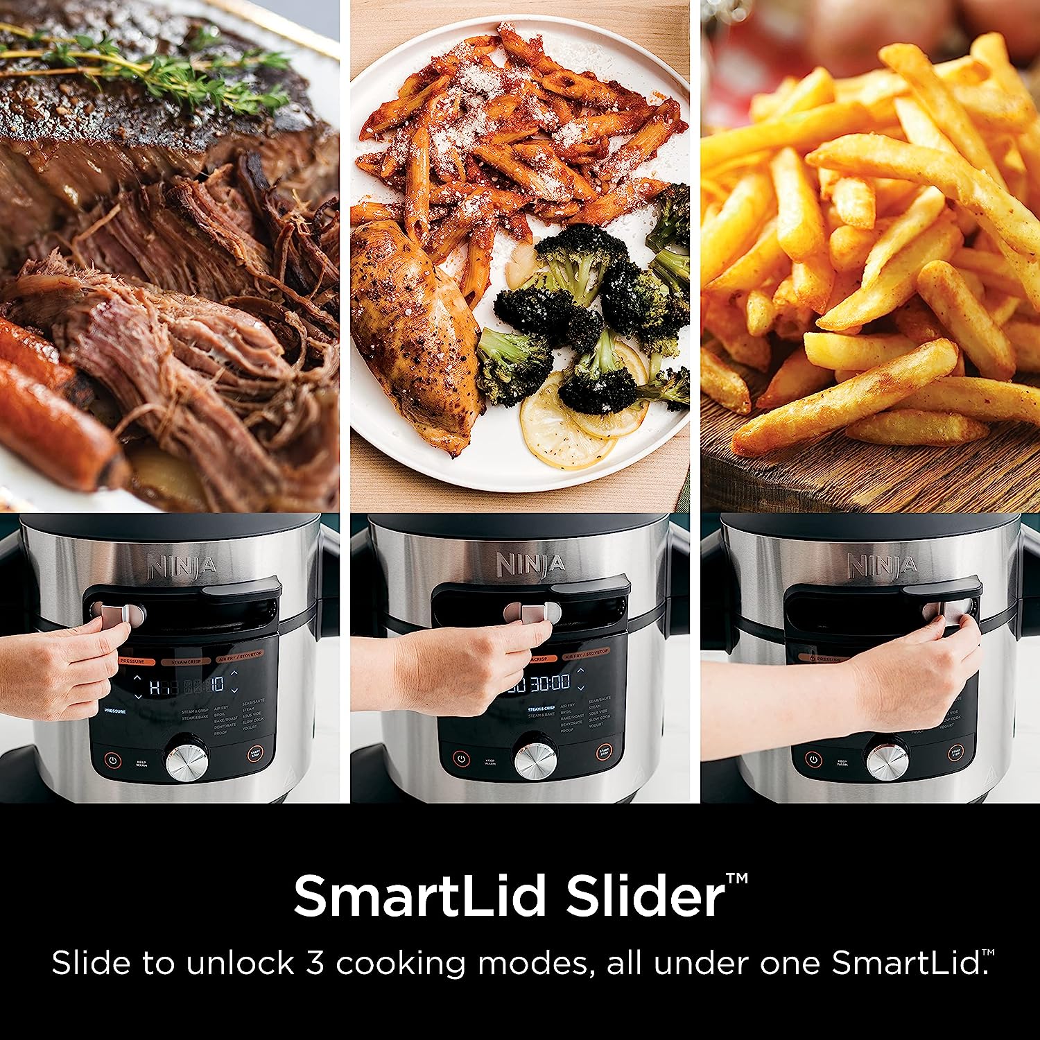 Meet the Ninja® Foodi® 14-in-1 8-qt. XL Pressure Cooker Steam Fryer with SmartLid™. The pressure cooker that steams and crisps. SmartLid Slider™ unlocks pressure cooking, air frying, and SteamCrisping, all under one SmartLid™. SteamCrisp™ Technology steams and crisps at the same time for faster, juicier, crispier results*. 14 1-touch programs unlock even more versatility. (*Vs. Ninja® FD300)