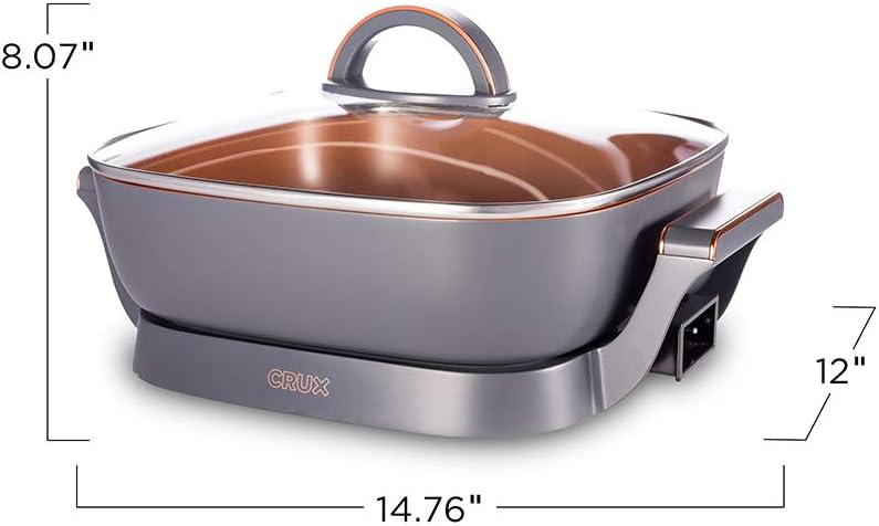 Introducing the CRUX Electric Skillet with lid, a kitchen essential that brings luxury and convenience to your culinary experience. Designed with cutting-edge technology, this skillet features a generously sized cooking surface, allowing you to prepare larger meals with ease.