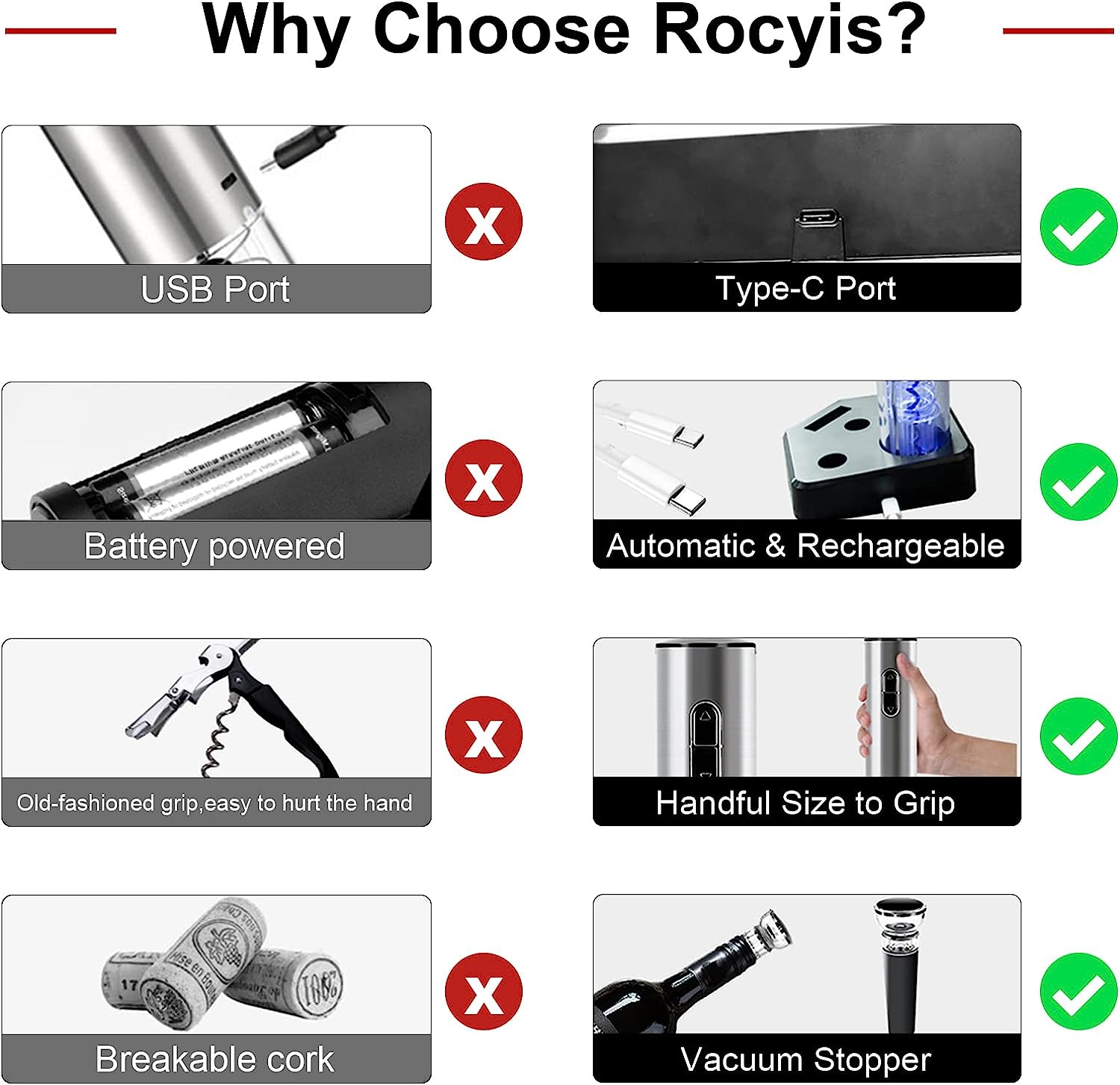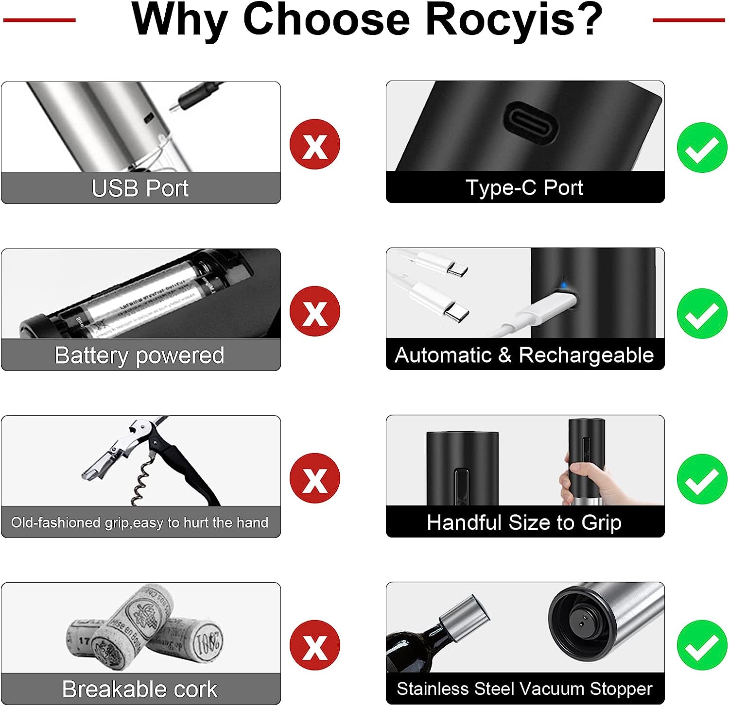 Electric Wine Opener-Rocyis Wine Gift Set-Electric Wine Aerator Pourer-Wine Dispenser Battery Operated, Rechargeable Wine Bottle Opener with Foil Cutter, Vacuum Stoppers-Wine Gifts for Women