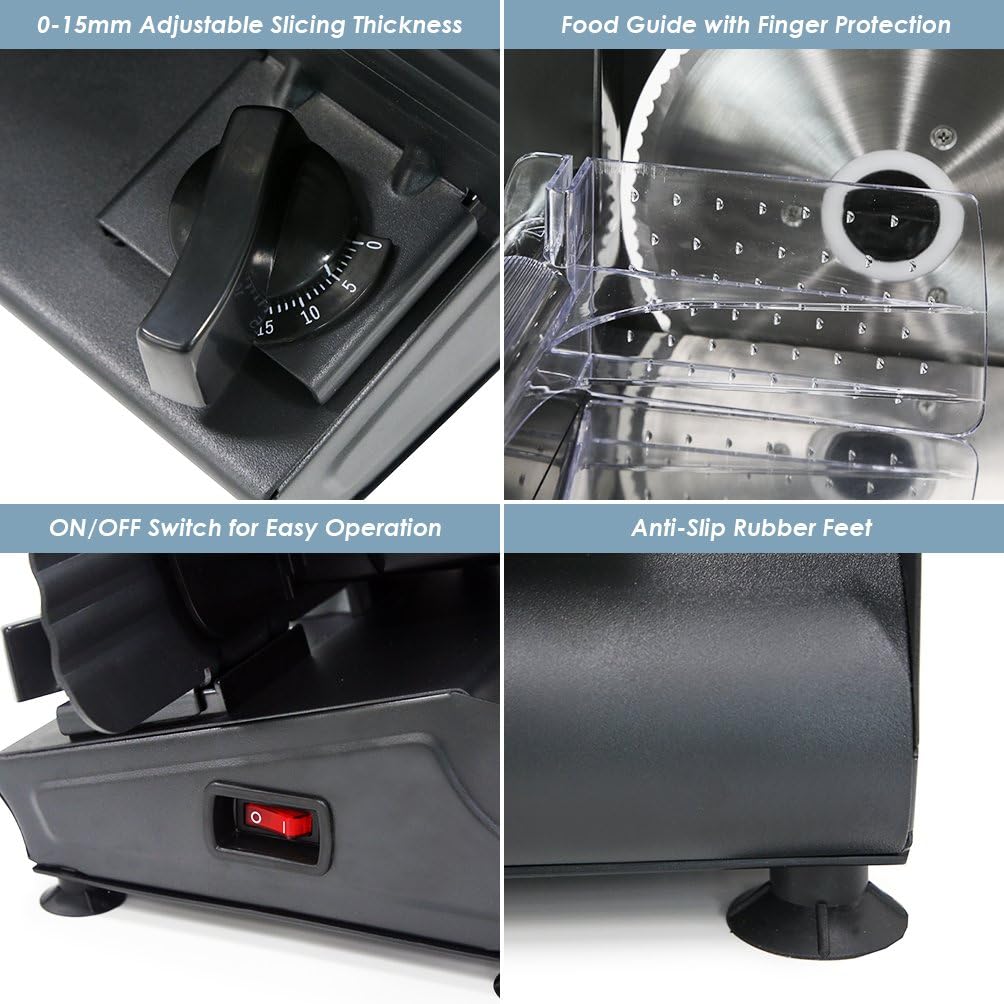 Now you don’t have to waste your time, effort and money on sliced meat anymore, since you can easily enjoy all your delicious cold cuts, as thinly sliced as you want, from the comfort of your home! Our convenient and fuss-free food slicer will help you make the most finger-licking snacks, appetizers and sandwiches with zero effort!