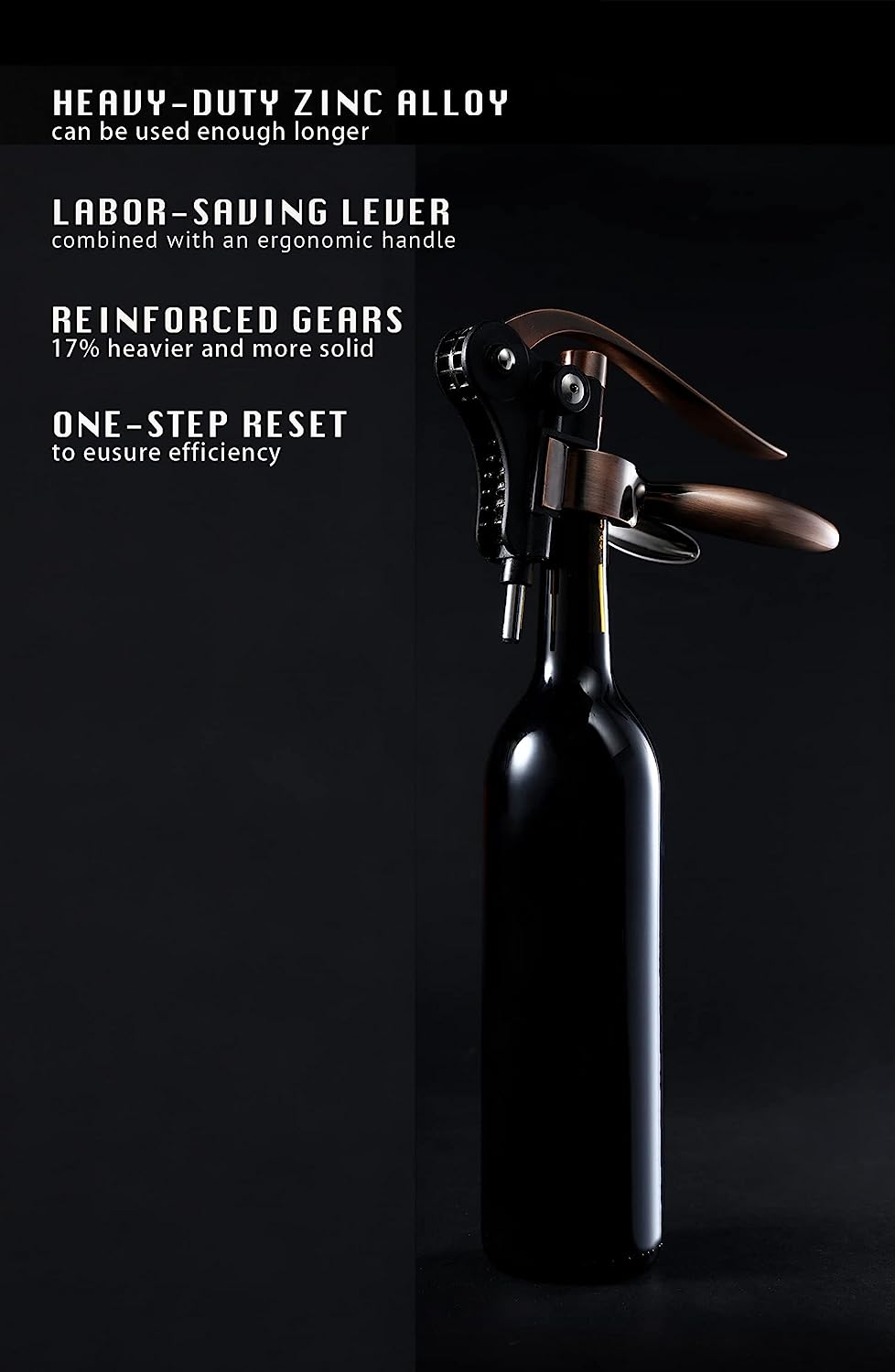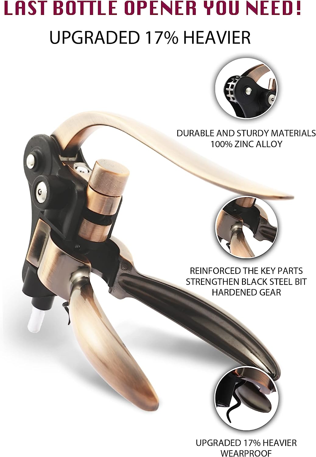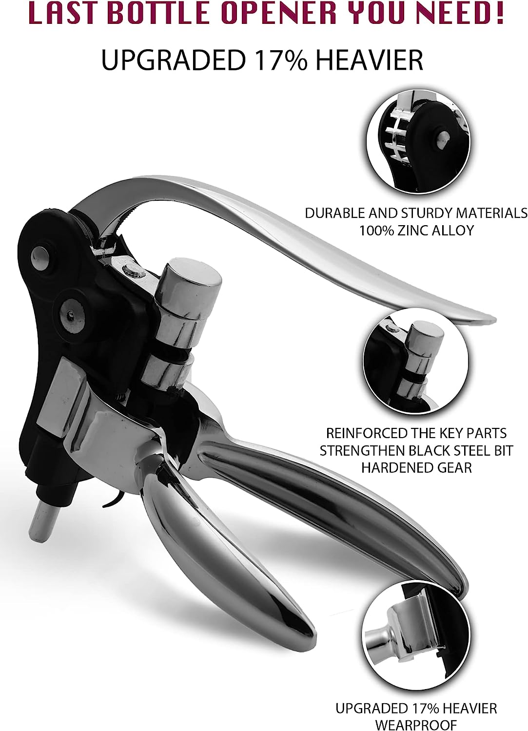 • Bionic Design - The wine opener features decorative rabbit-ear handles and also ergonomic feeling, this made pulling on the handle much more comfortable and gave a wine enthusiast confidence that the hand wouldn't slip
