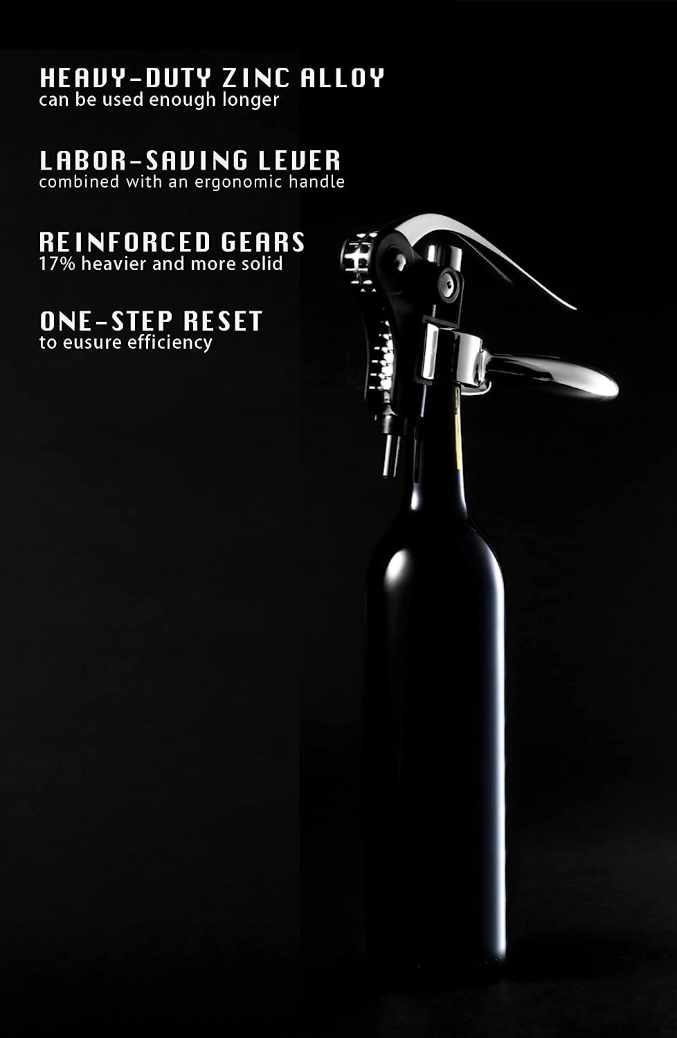 • Bionic Design - The wine opener features decorative rabbit-ear handles and also ergonomic feeling, this made pulling on the handle much more comfortable and gave a wine enthusiast confidence that the hand wouldn't slip