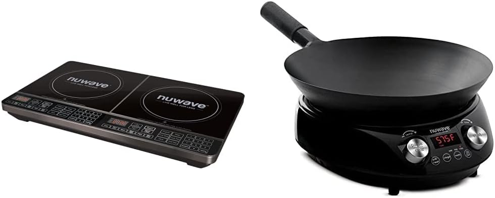 Nuwave Mosaic Induction Wok, Precise Temp Controls from 100°F to 575°F in 5°F, Wok Hei, Infuse Complex Charred Aroma & Flavor, 3 Wattages 600, 900 & 1500, Authentic 14-inch Carbon Steel Wok Included
