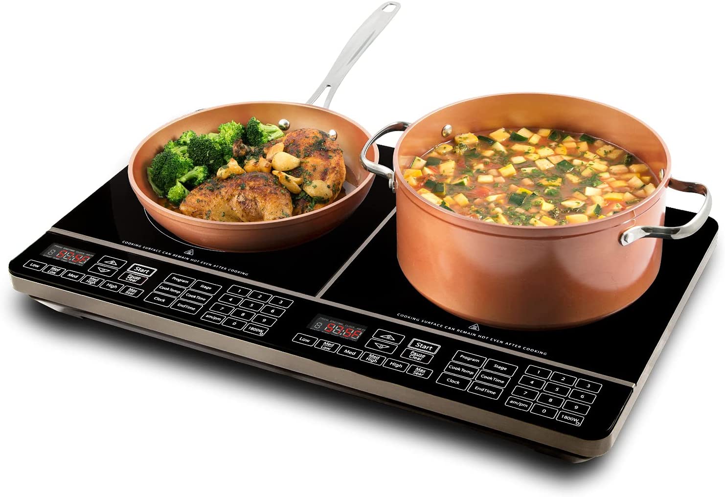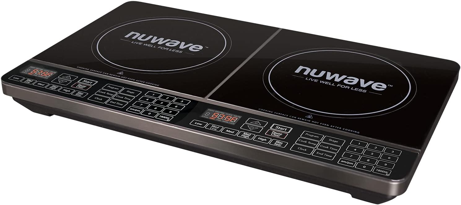 Nuwave PIC Double, Portable, Powerful 1800W with 2 Large 8” Heating Coils, Independent Controls, 94 Temp Settings from 100°F to 575°F in 5°F Increments, 11.5” Shatter-Proof Ceramic Glass Surface