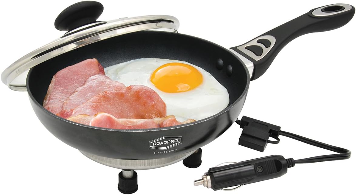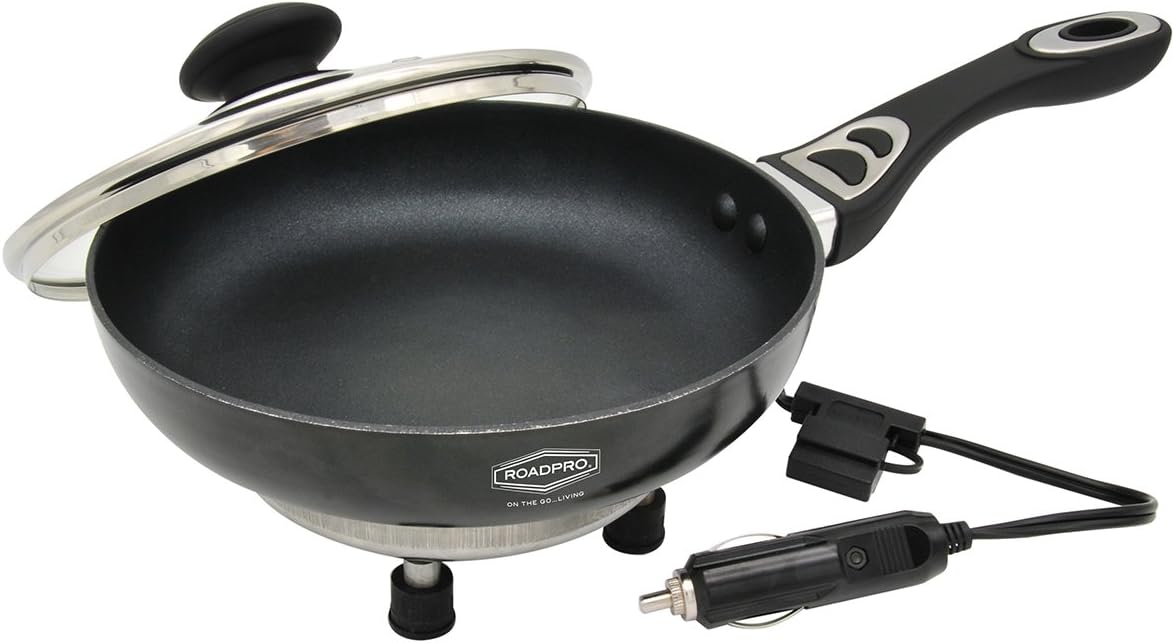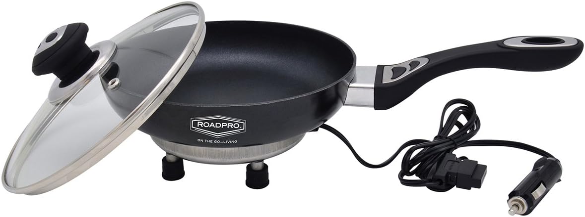 RoadPro 12V Power Supply Portable, Travel Frying Pan with Non-Stick Surface