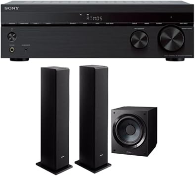 Sony STR-DH790 4K 7.2-Channel Home Theater AV Receiver with SSCS3 3-Way Floorstanding Speakers (Pair, Black) and SACS9 10-Inch Active Subwoofer (Black) Bundle (4 Items)