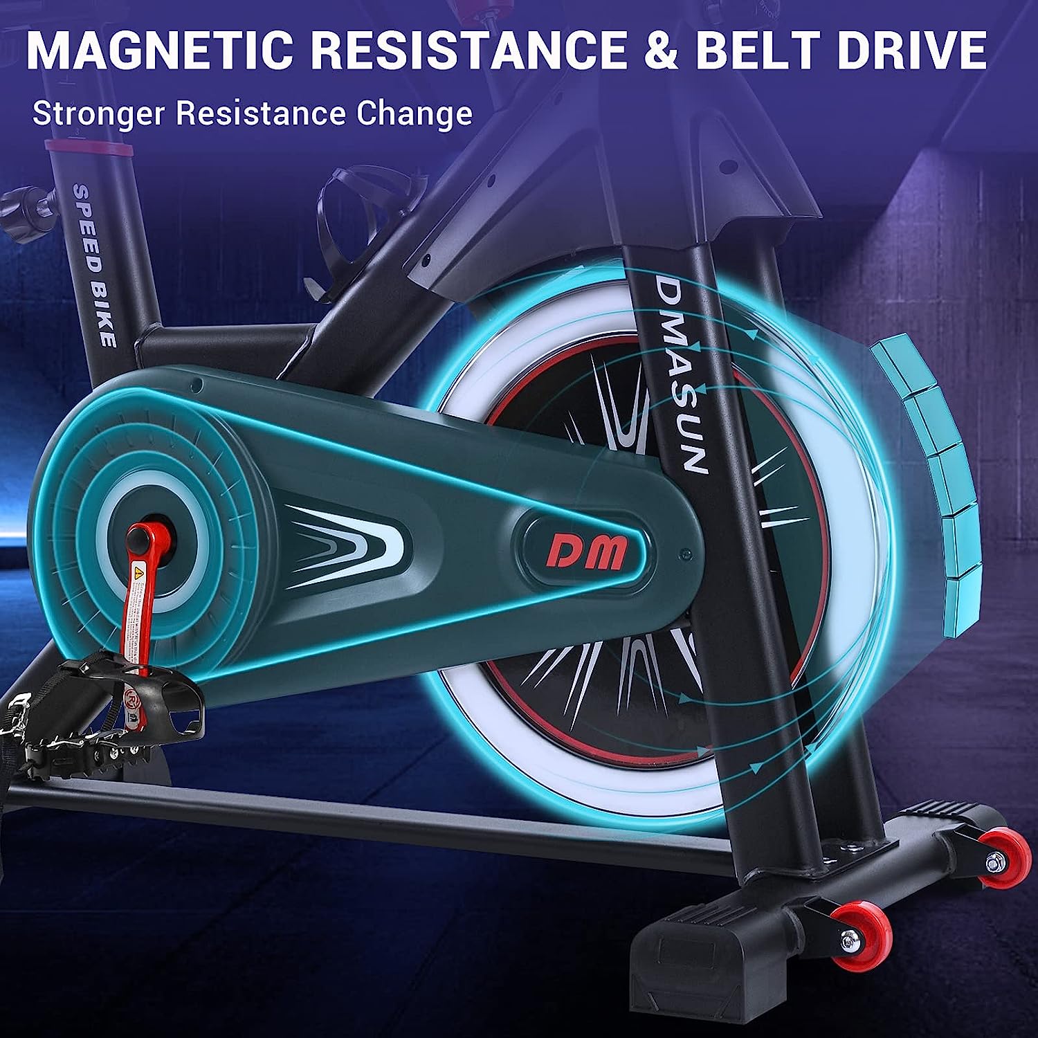 DMASUN Exercise Bike, Plus/Pro Magnetic Resistance/Brake Pad Indoor Cycling Bike Stationary, Cycle Bike with Comfortable Seat Cushion, Digital Display with Pulse
