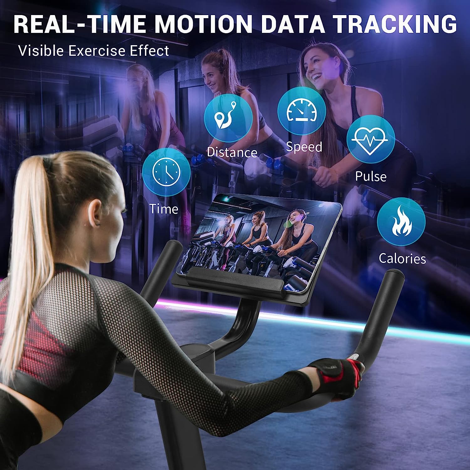 • 【Silent and Smooth】This indoor cycling bike's wool felt resistance system with wider adjustment range, the lowest to highest resistance difference is a 0-100 riding experience. Quiet without disturbing others.