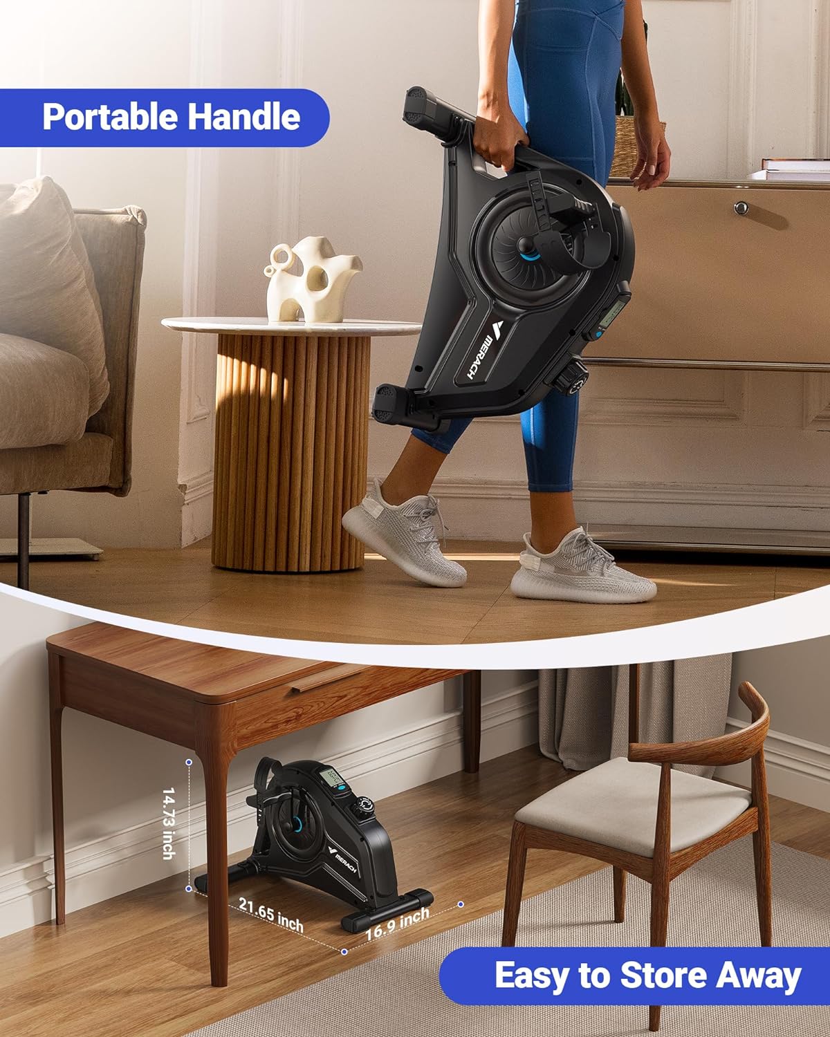 • 16-Level Smooth Magnetic Resistance: MERACH under desk bike operates on a magnetic resistance mechanism, allowing you to choose from multiple resistance settings. A cardio solution for office calorie burn, physical therapy, and even senior fitness!